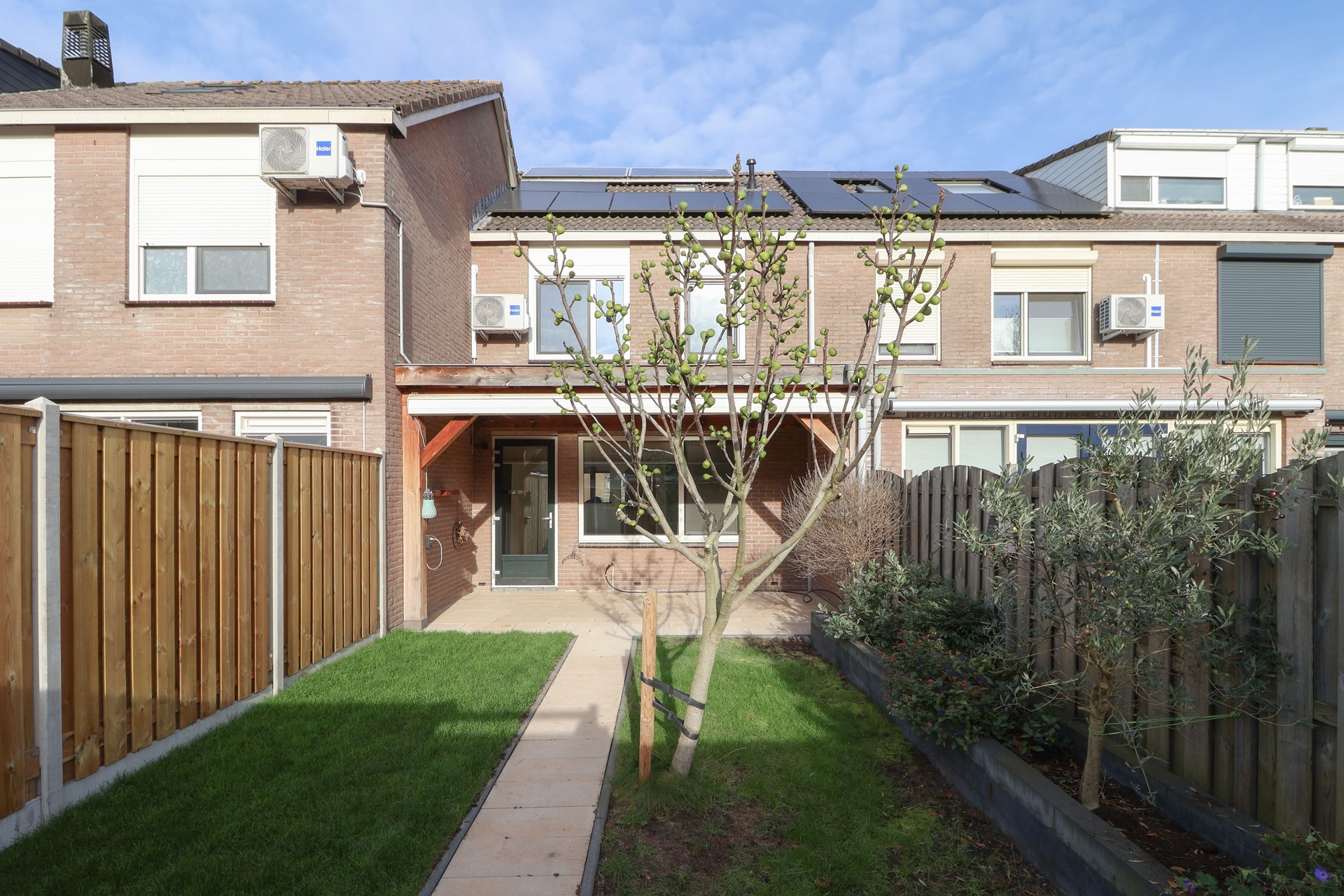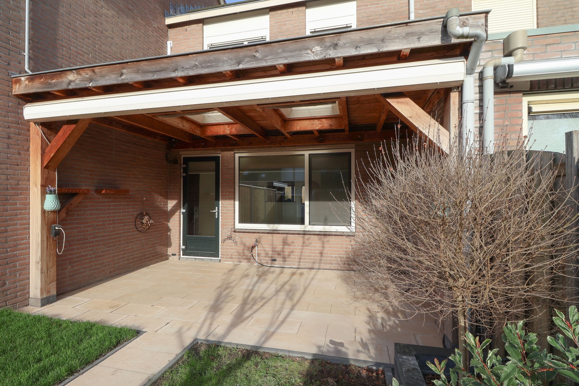 De woning beschikt over een fraai aangelegde achtertuin die is gelegen op het zuiden, waardoor je de hele dag kunt genieten van de zon. De tuin is verzorgd aangelegd met een gazon, bestrate paden en een ruim terras direct aan de woning met een overkapping – ideaal om ook op warmere of juist regenachtige dagen buiten te zitten.