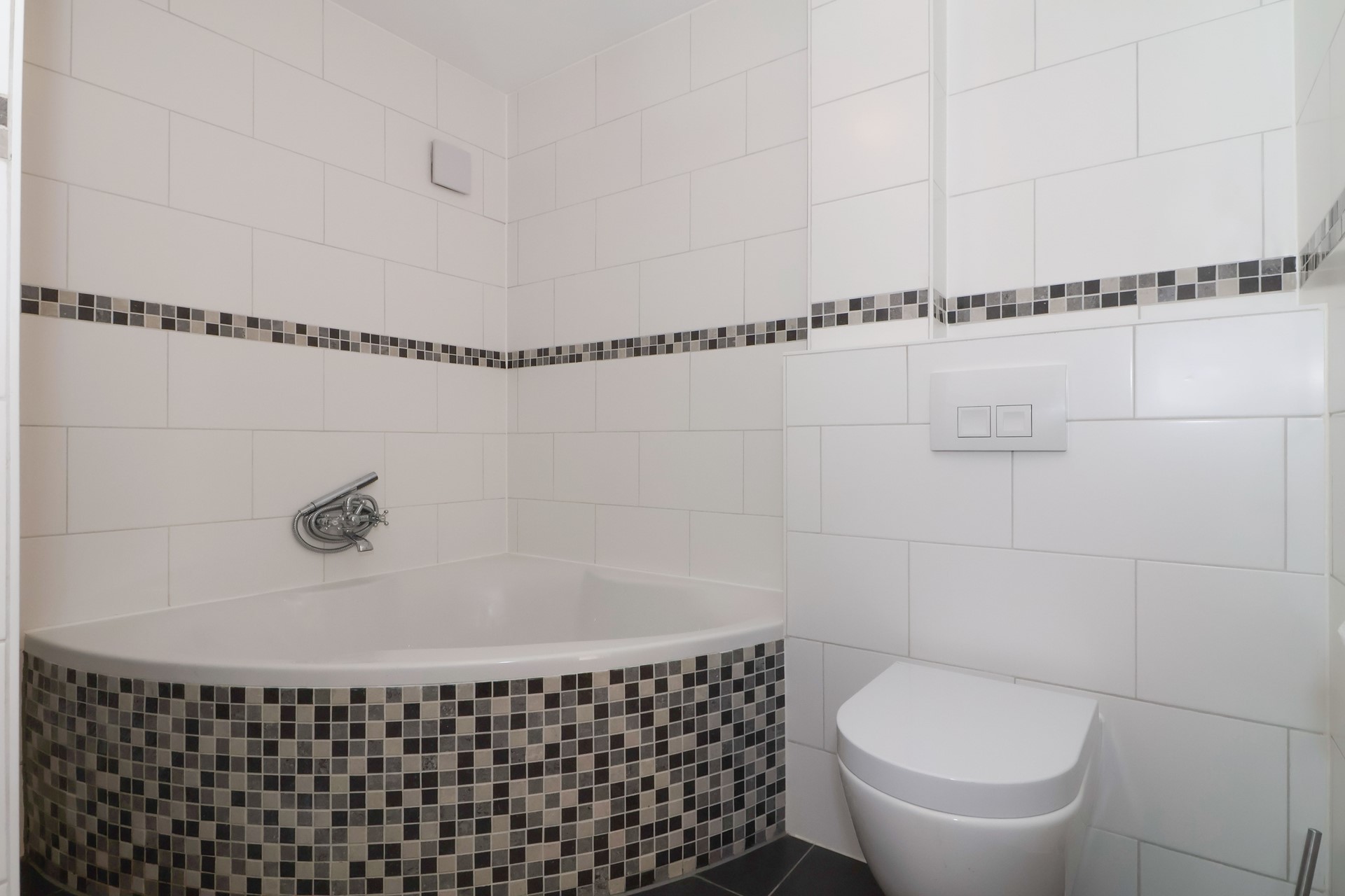 Aan de voorzijde van de woning bevindt zicht de badkamer welke is voorzien van een ligbad, wastafel en tweede toilet.