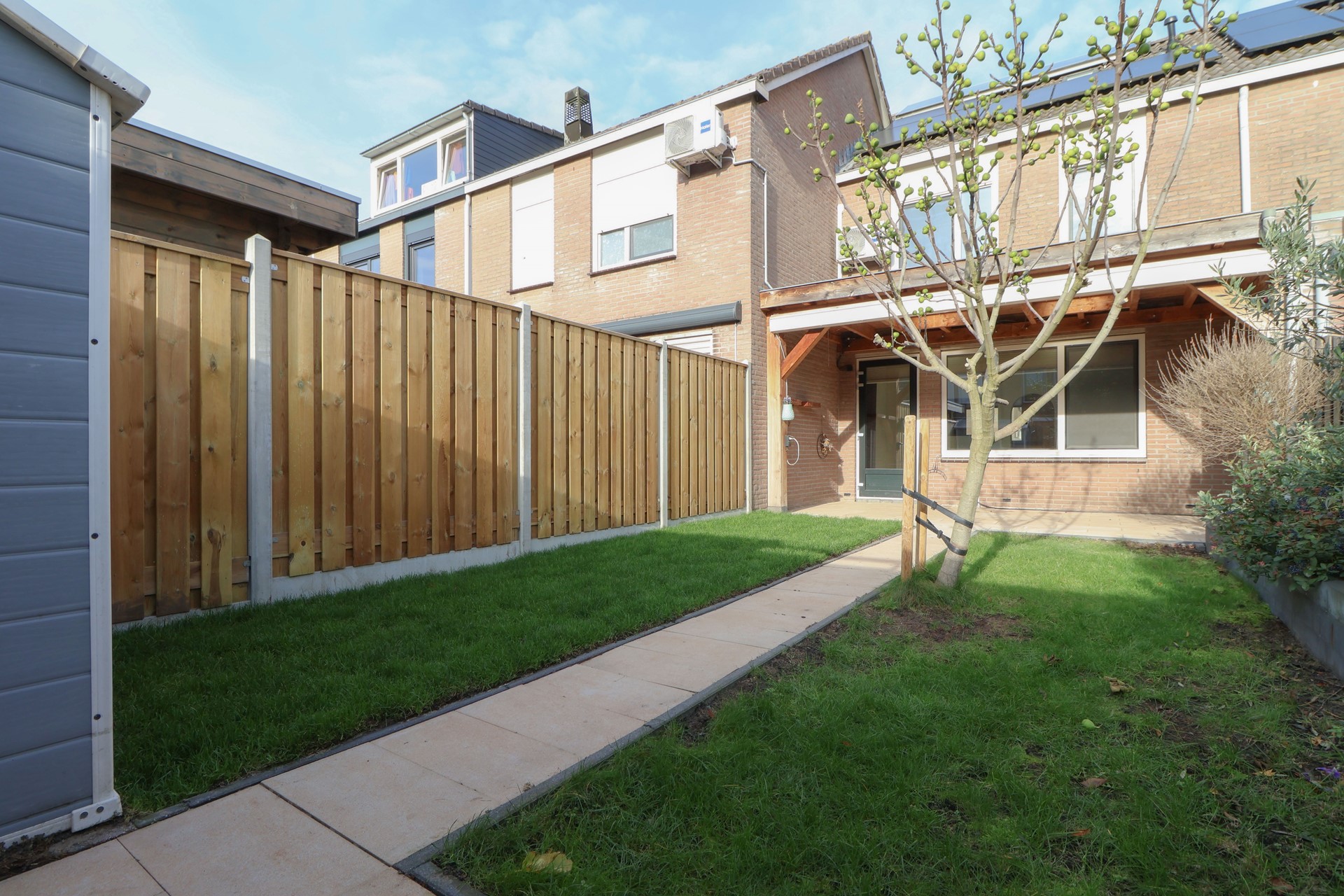 Achter in de tuin bevindt zich een praktische berging, perfect voor het opbergen van tuinmeubelen, gereedschap of fietsen. De tuin is volledig omheind en biedt daardoor veel privacy. Bovendien is er een achterom, wat het gemakkelijk maakt om met de fiets of het afval door te lopen.