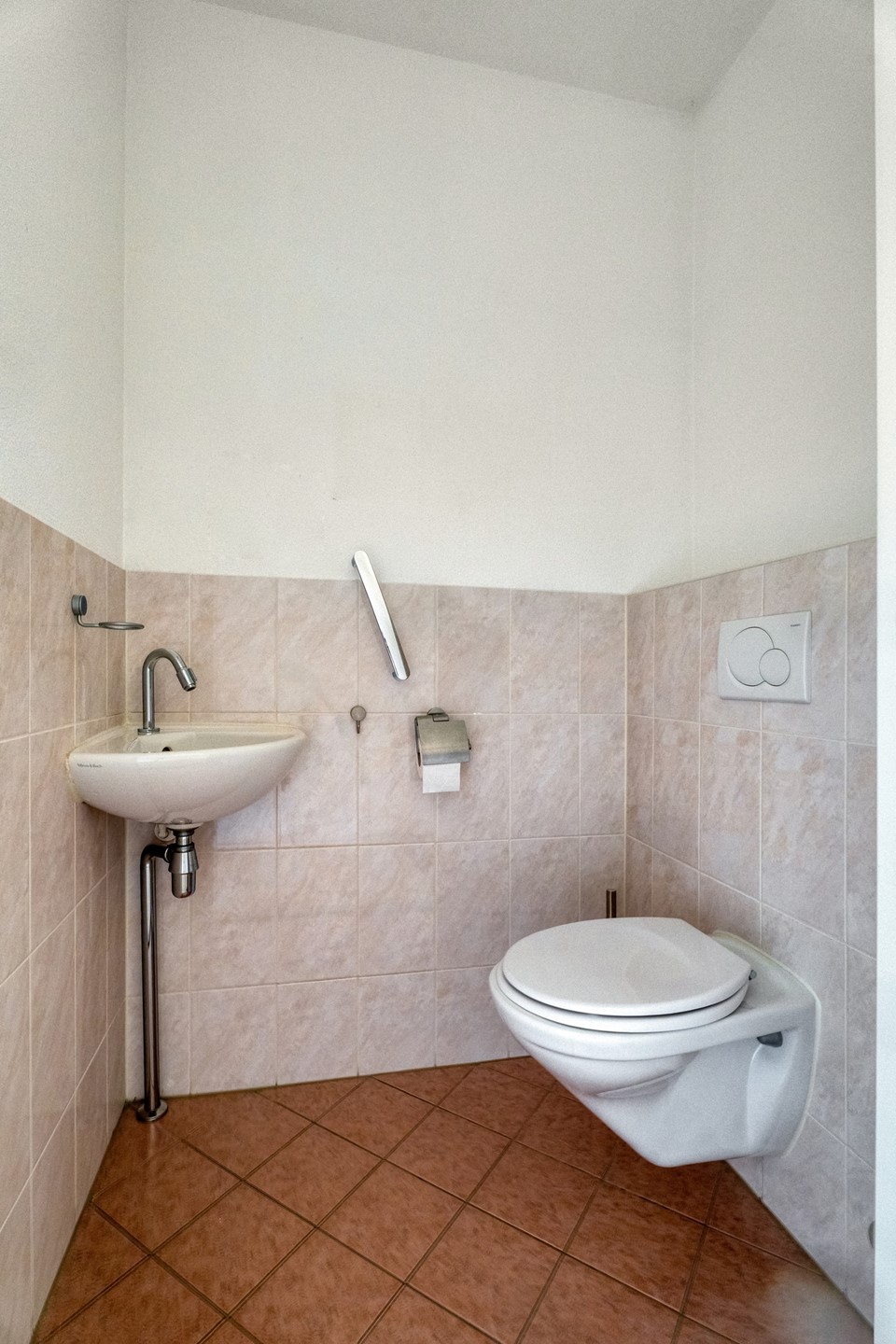 Aan de achterzijde van het appartement ligt de slaapkamer, die ruim genoeg is voor een tweepersoonsbed en is voorzien van een grote ingebouwde kast. Grenzend aan de slaapkamer vind je de badkamer, uitgerust met een wastafel en douche.