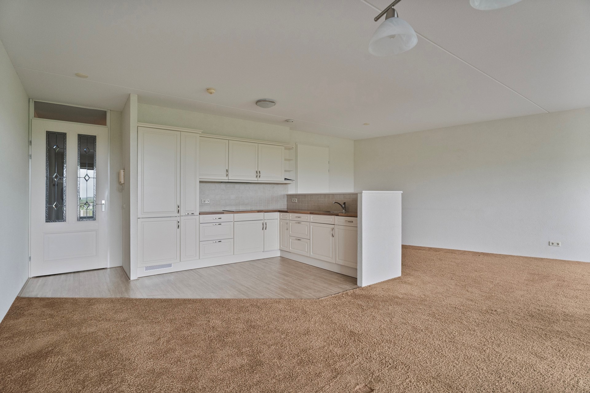 Je komt binnen in een ruime hal/entree met toegang tot een separaat toilet en een praktische bergkast. Vanuit de hal stap je direct de lichte woonkamer in, die zich over de volle breedte van het appartement uitstrekt. Dankzij de grote raampartijen geniet je hier van veel daglicht en een prettig uitzicht. De woonkamer biedt voldoende ruimte voor een comfortabele zithoek en een eethoek.