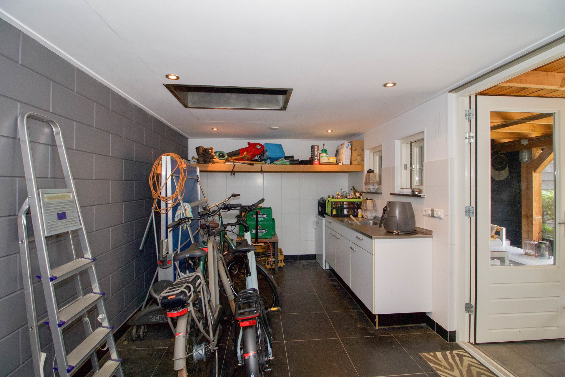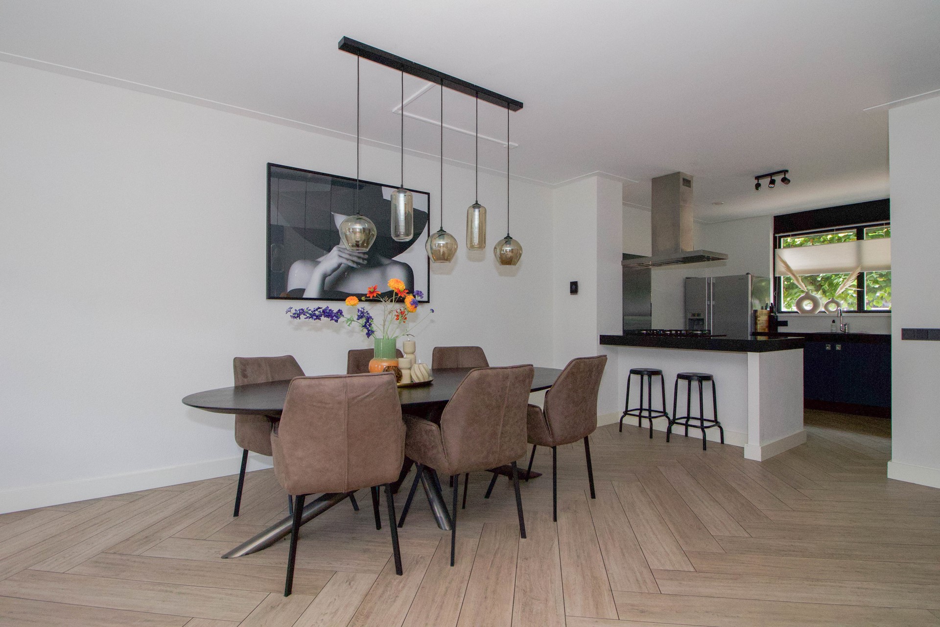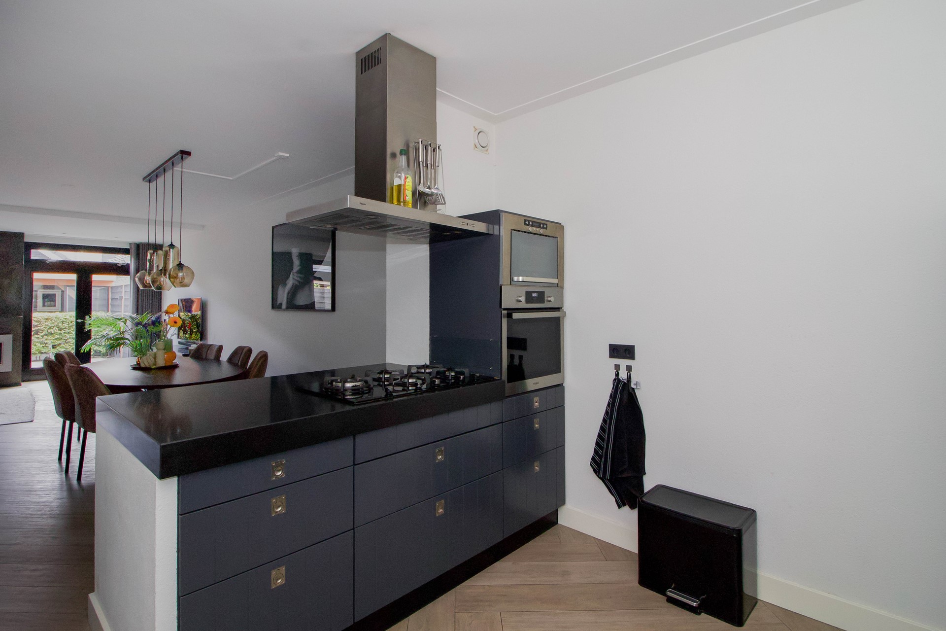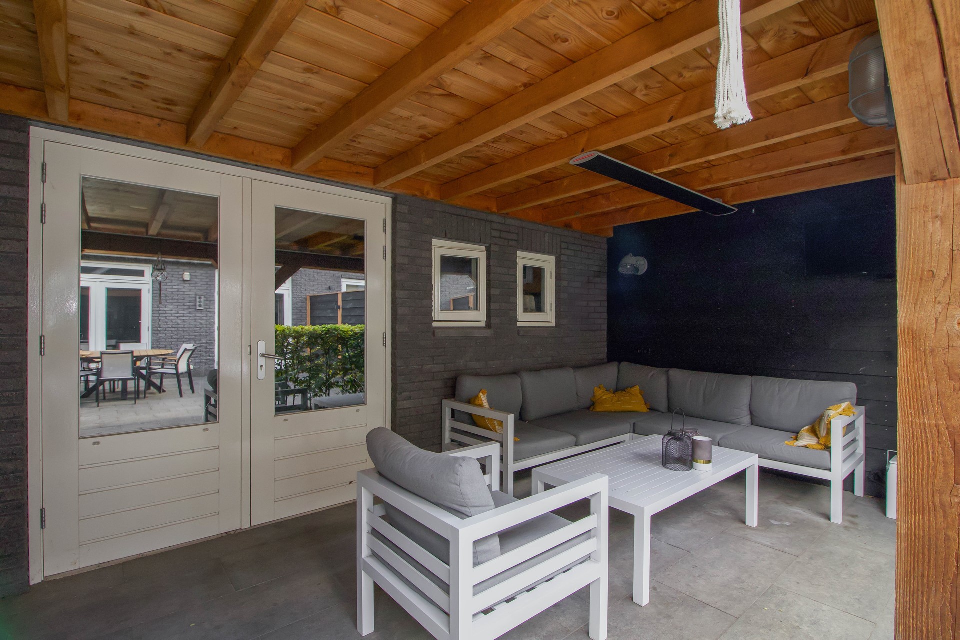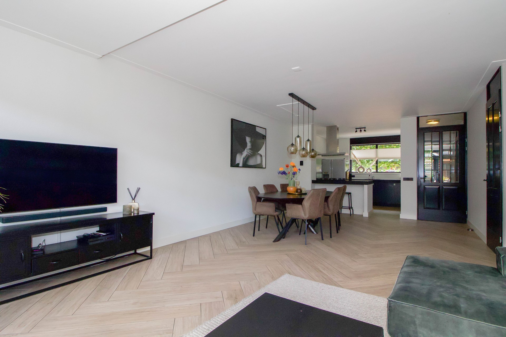 De woonkamer is een heerlijke plek om te zijn. De sfeervolle haard vormt het warme middelpunt, terwijl de visgraatvloer met vloerverwarming zorgt voor comfort en stijl in één. Dankzij de dubbele openslaande deuren aan beide zijden stroomt het licht rijkelijk naar binnen én loopt het leven naadloos over in de tuin. En die tuin? Die is royaal, fraai aangelegd en voorzien van een XL stenen schuur én een overdekte veranda om het hele jaar door van buiten te genieten.