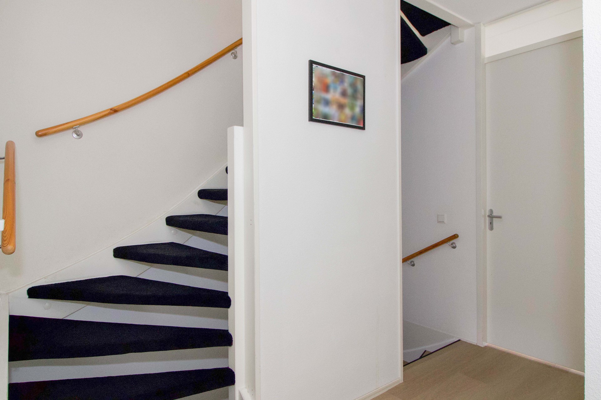 Entree aan de voorzijde. Hal met toegang tot toilet en de trap naar de eerste verdieping. Vanuit de hal toegang tot de woonkamer met een open verbinding tot de keuken. In zowel de keuken als de woonkamer ligt een visgraad vloer.