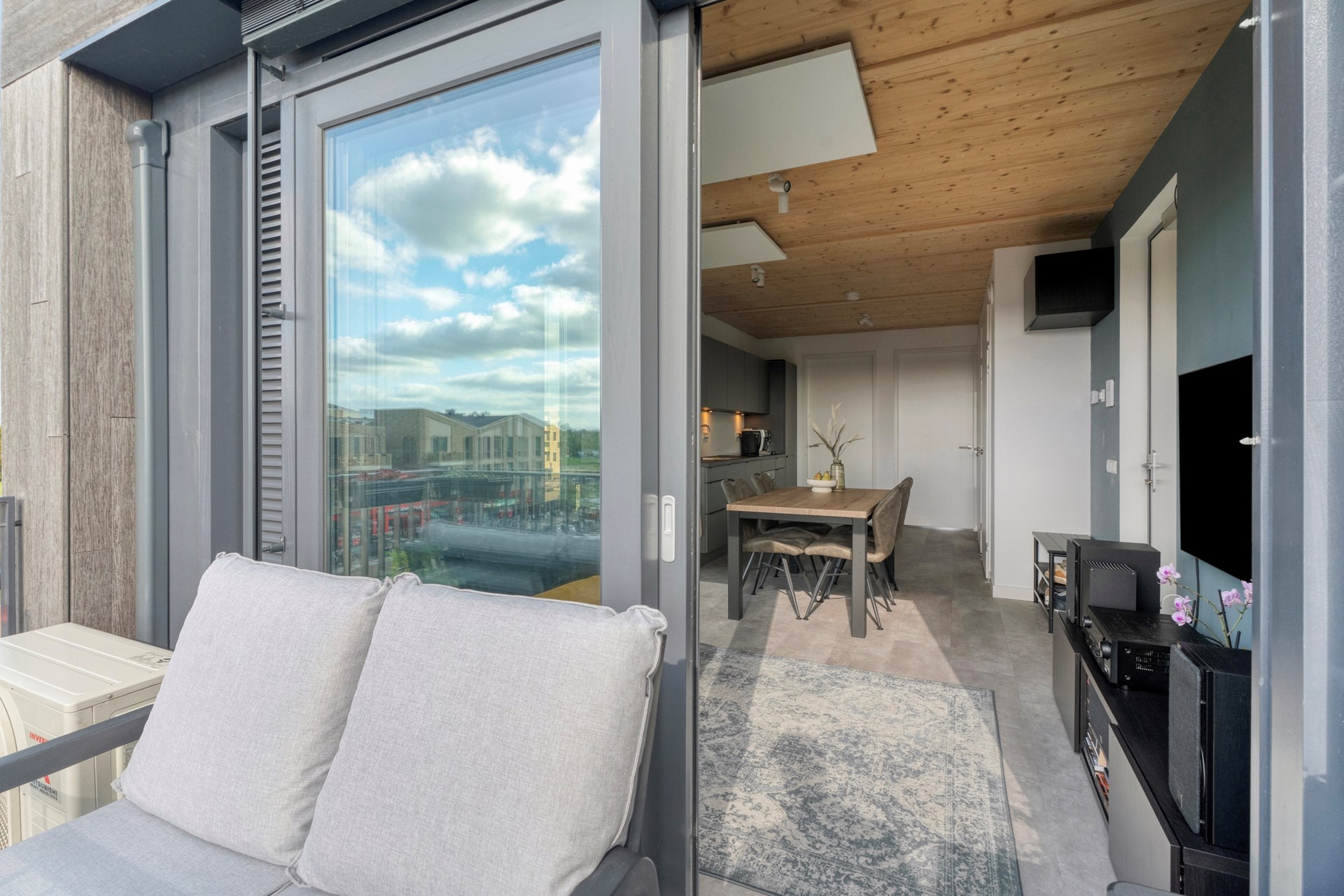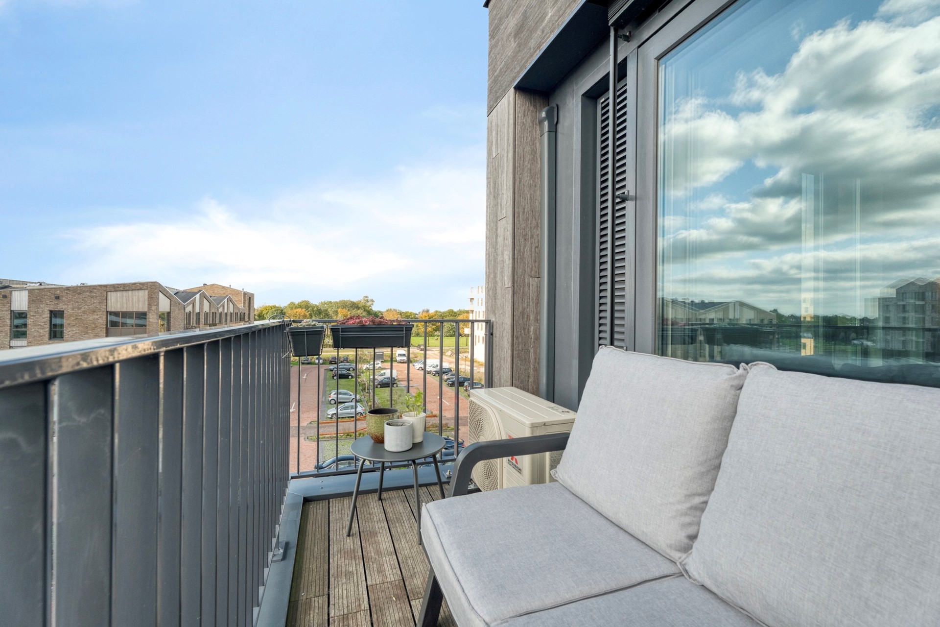 Het ruime balkon ligt op het zuiden en biedt voldoende plek voor een zitje. Hier kun je in alle rust genieten van de zon en het uitzicht op de omgeving.