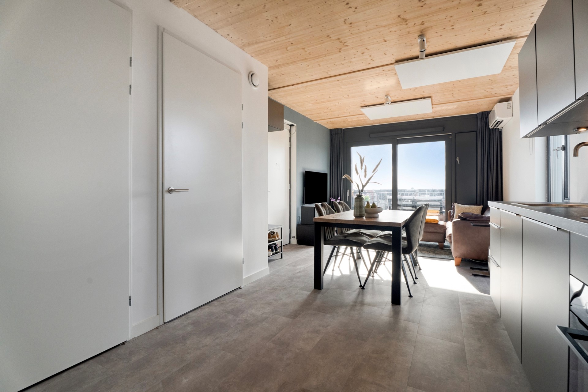 Je woont hier helemaal bovenin, op de hoek, met een vrij uitzicht en prachtig licht dat binnenvalt door het extra zijraam. De woonkamer oogt hierdoor ruim en levendig, met een natuurlijke verbinding naar het zonnige balkon op het zuiden. Hier geniet je van de zon tot in de late uurtjes.