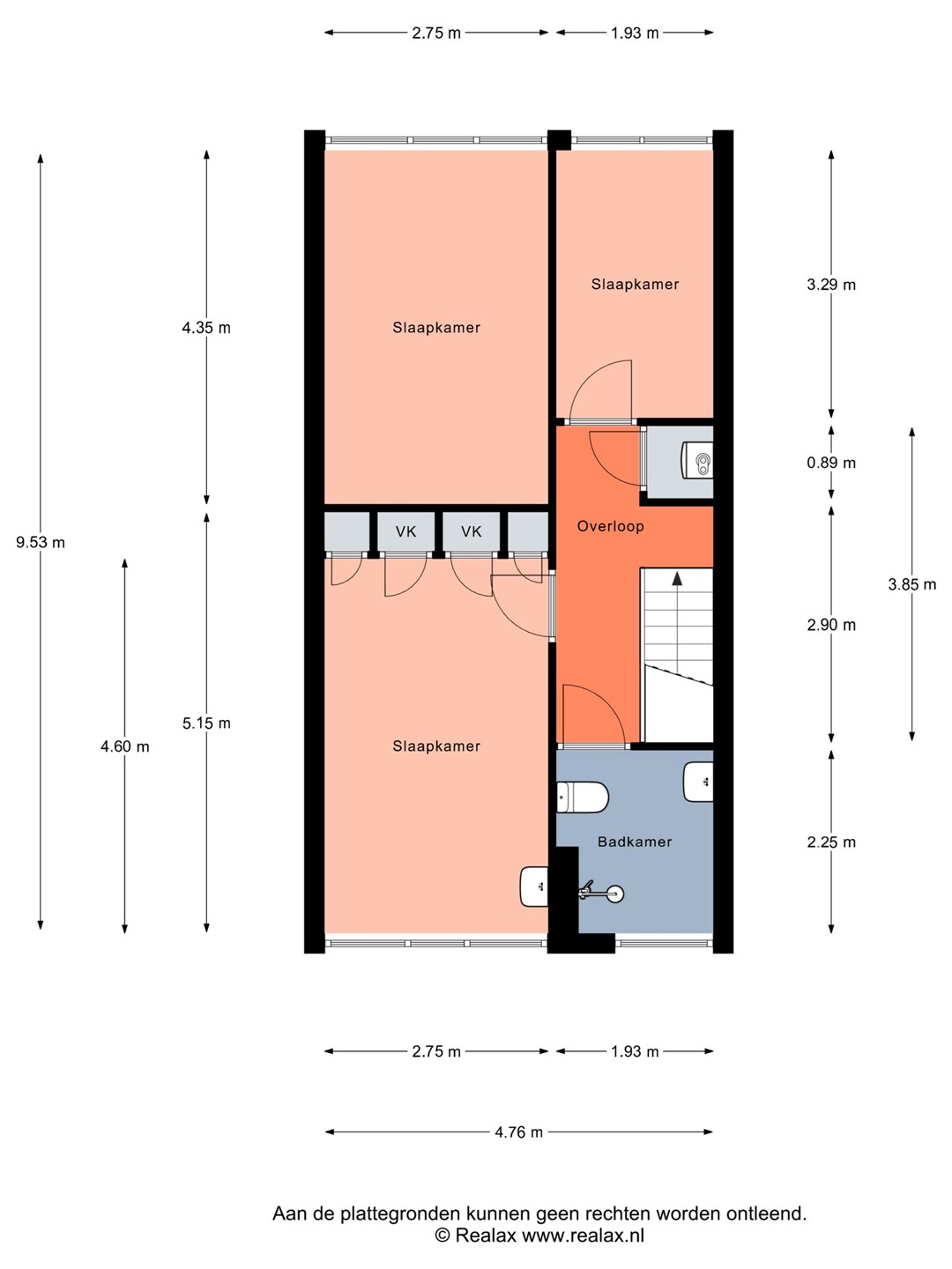 Via de trap kom je op de overloop, die toegang biedt tot drie slaapkamers en de badkamer.