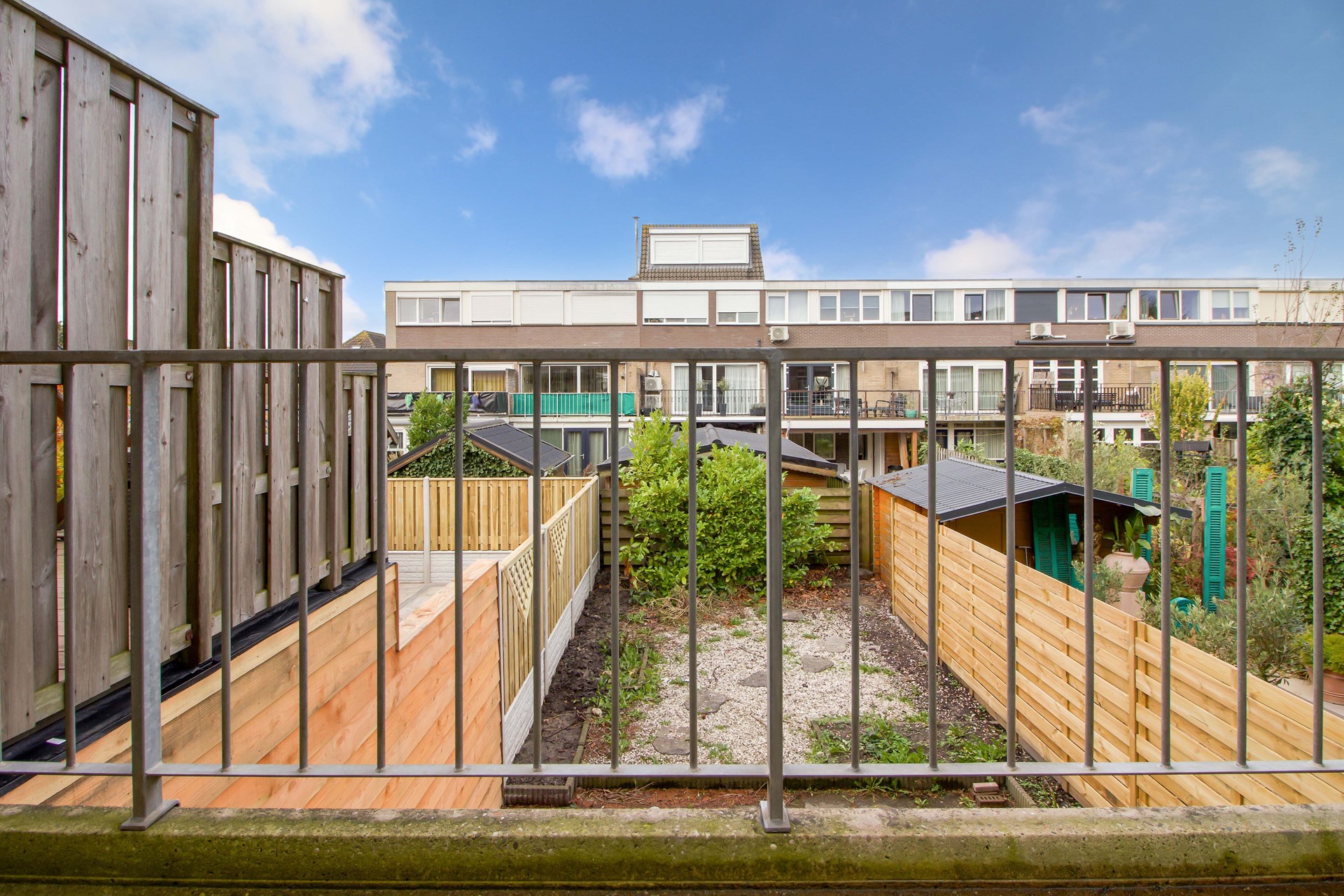 Aan de achterzijde van de woning bevindt zich een ruim balkon, bereikbaar vanuit de woonkamer. Dankzij de westelijke ligging geniet je hier van de middag- en avondzon. Een ideale plek om na een drukke dag heerlijk buiten te ontspannen. Het balkon biedt voldoende ruimte voor een gezellig zitje of wat groen, zodat je ook buiten prettig kunt vertoeven.