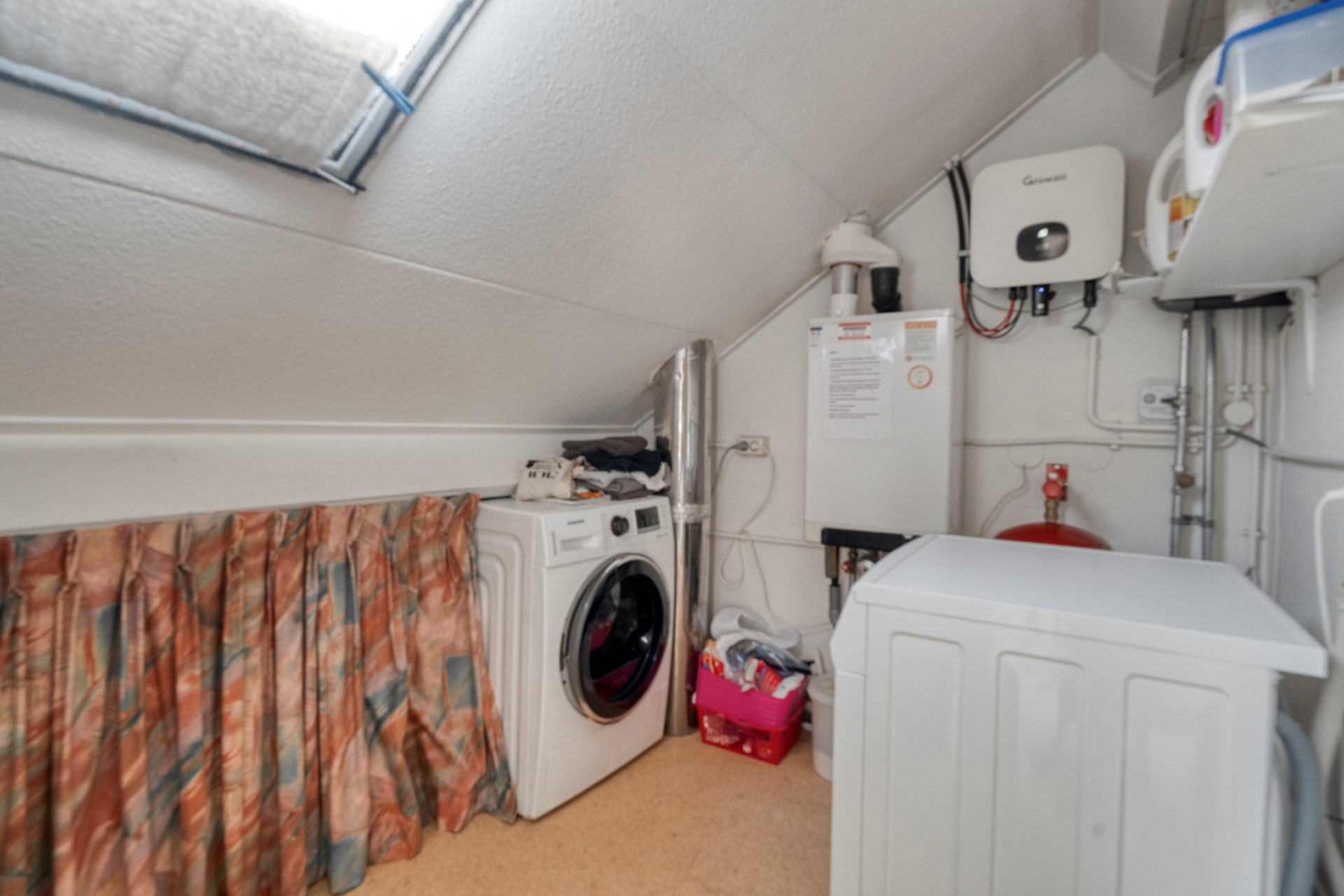 Daarnaast is er vanuit de overloop toegang tot de zolderruimte, die geschikt is voor extra bergruimte en waar zich tevens de technische installaties bevinden.
