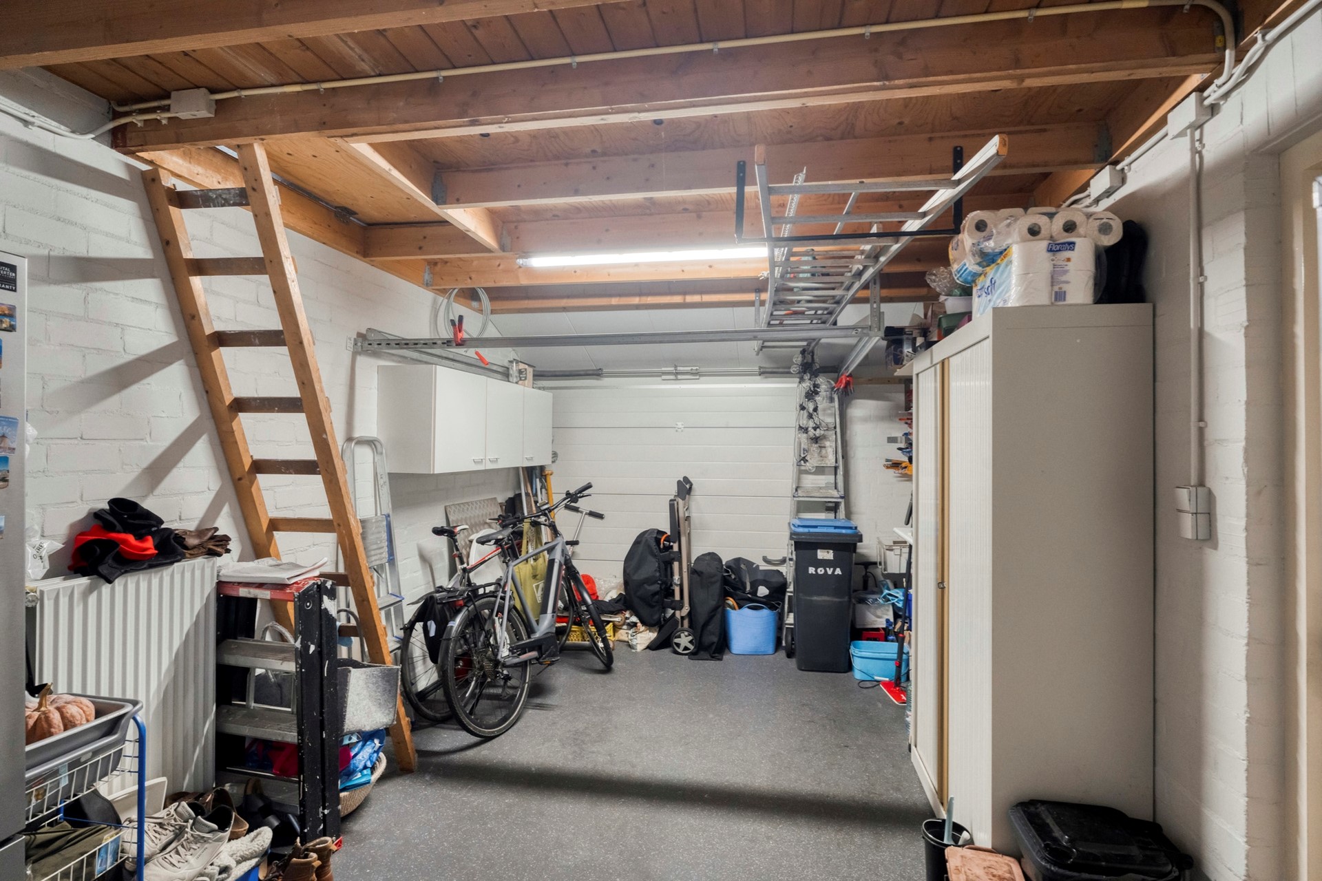 De garage is van buitenaf bereikbaar via een eigen entree en biedt volop ruimte voor het stallen van een auto, fietsen en extra bergruimte.