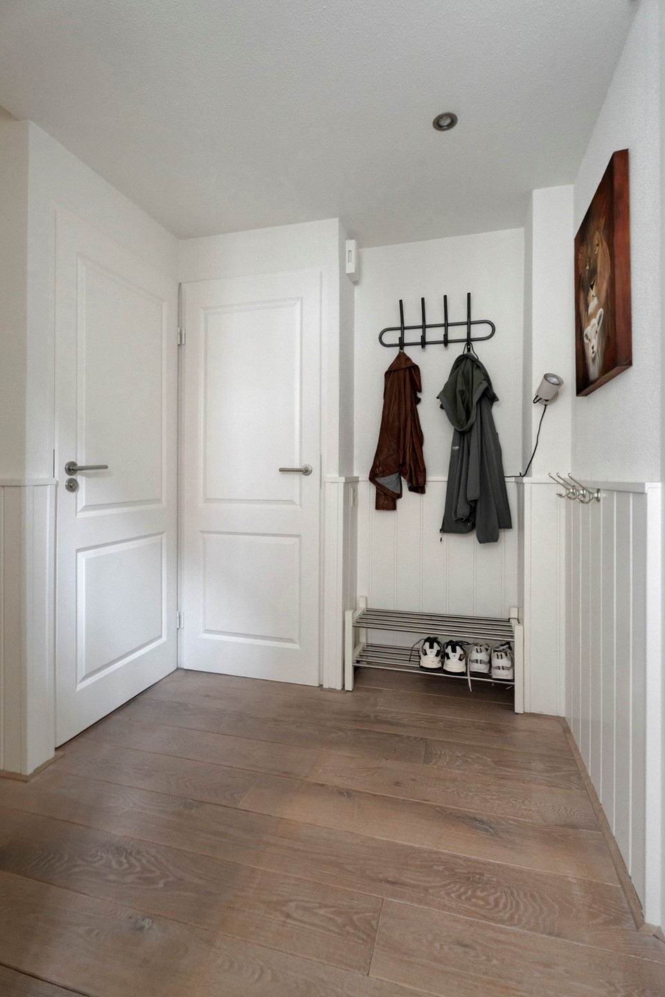 Via de entree komt u in de hal met toegang tot de meterkast, het separate toilet en een praktische kast onder de trap. Trap naar verdieping voorzien van PVC.