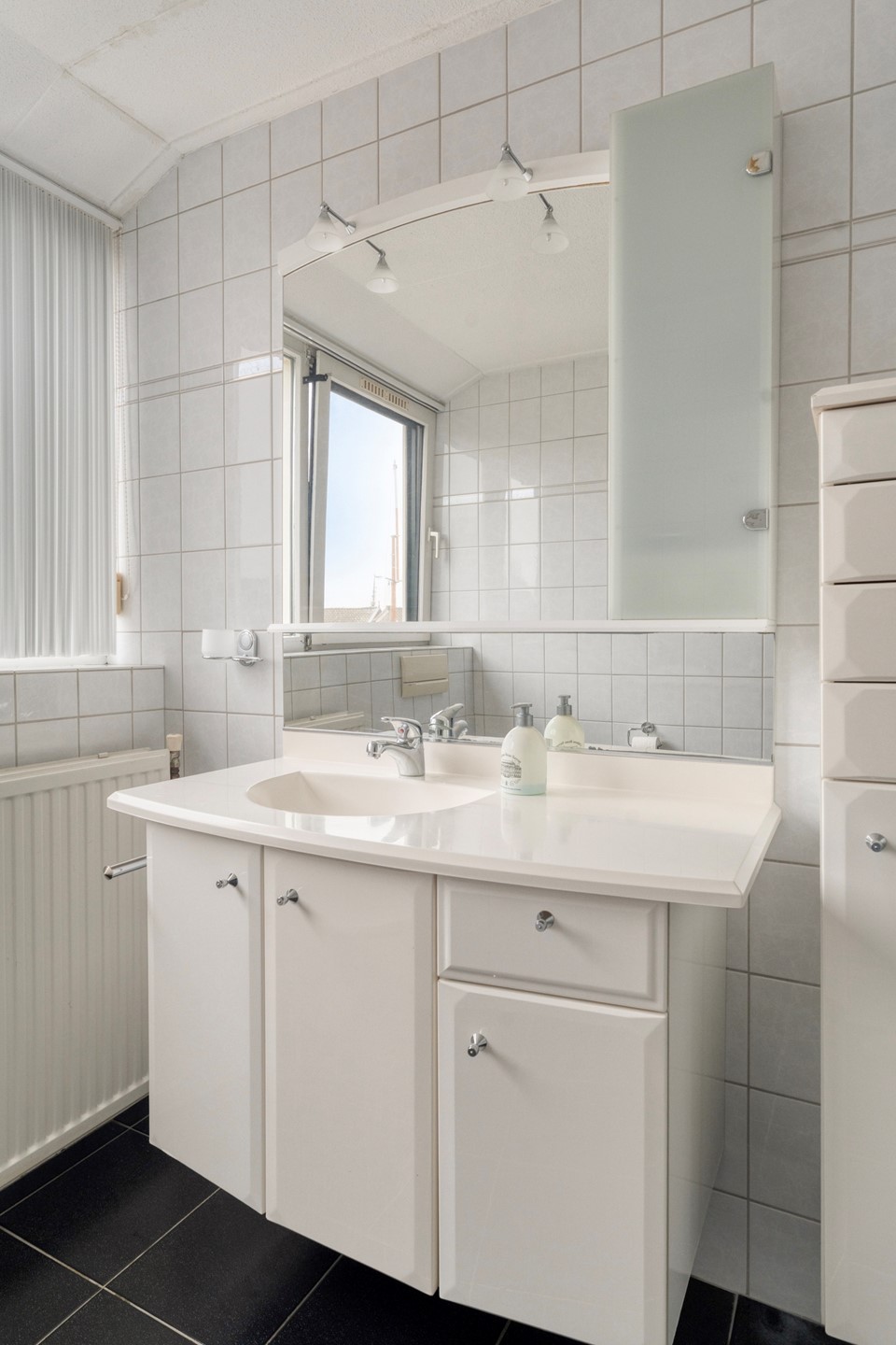 De badkamer is centraal gelegen en voorzien van de gebruikelijke voorzieningen. Daarnaast is er een praktische berging en kastruimte aanwezig, ideaal voor extra opslag.