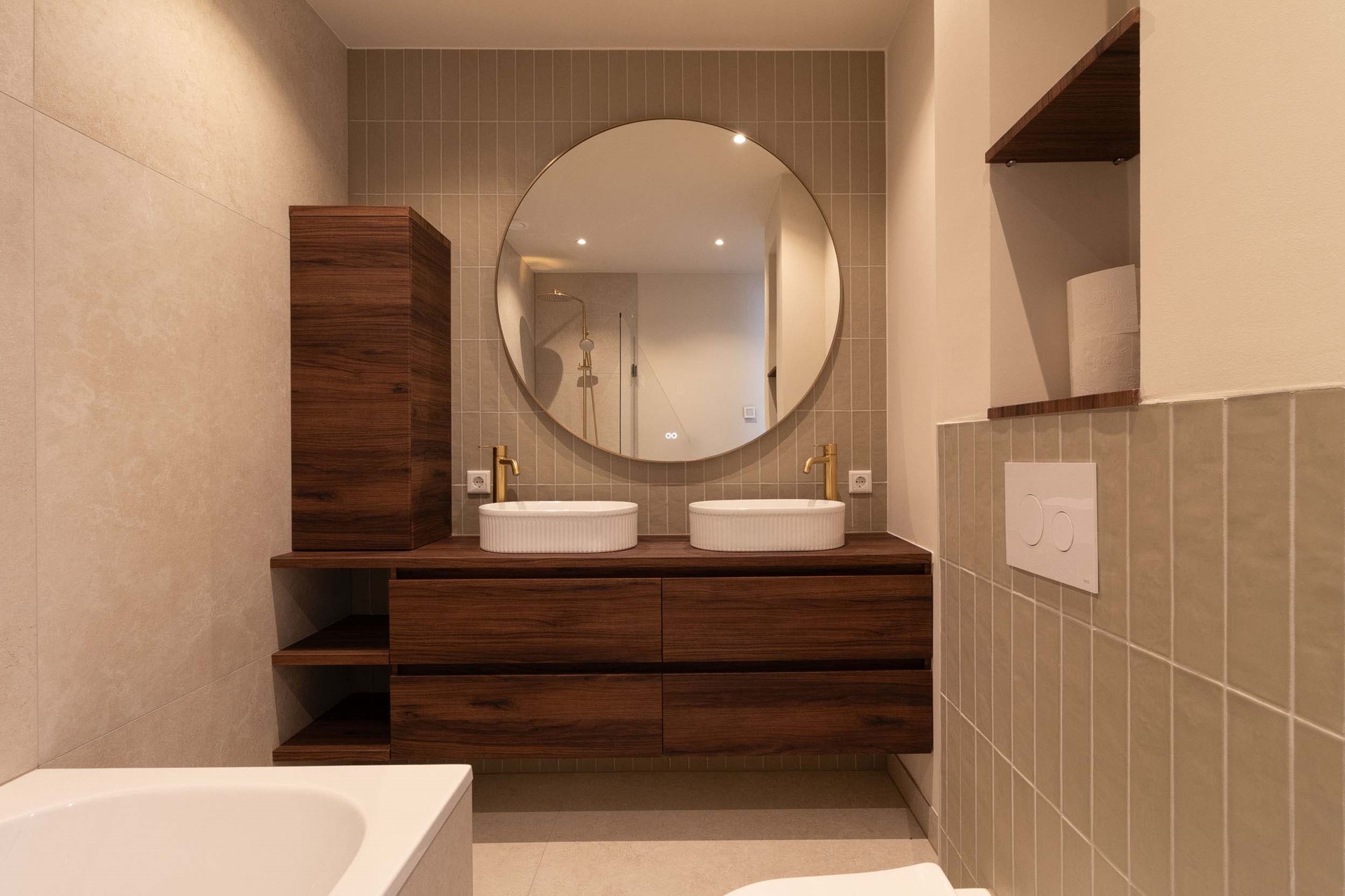 Badkamervoorzieningen Dubbele wastafel, Ligbad, Toilet, Wastafelmeubel