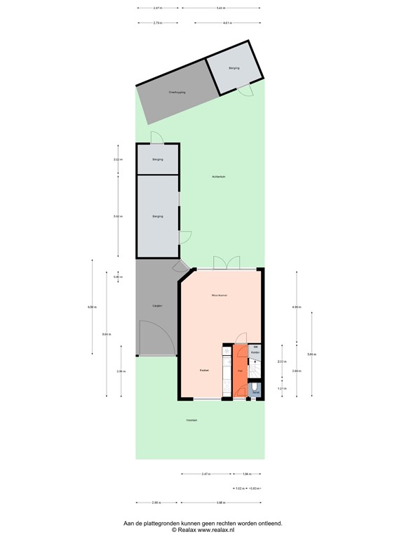 Zonnige tuin op het zuiden. Aan de achterzijde een veranda. Aan de voorzijde van de woning een carport en vrijstaande garage. Tuin is netjes aangelegd.