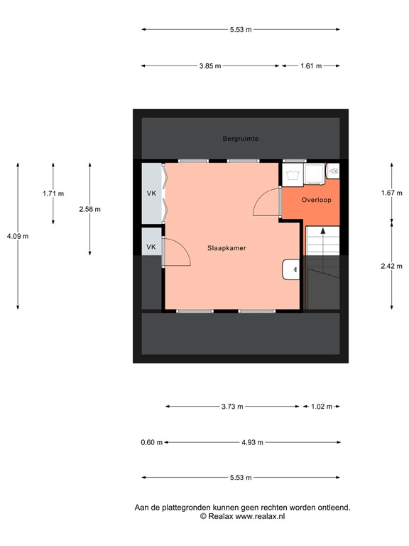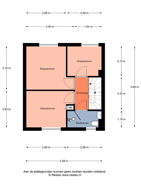 Eén slaapkamer aan de voorzijde van de woning. Twee slaapkamers aan de achterzijde.