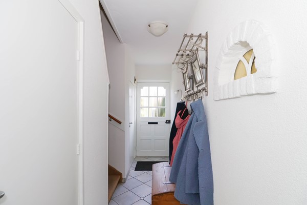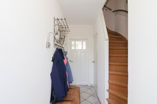 Voorentree met toegang tot het toilet, trapopgang, meterkast en woonkamer.