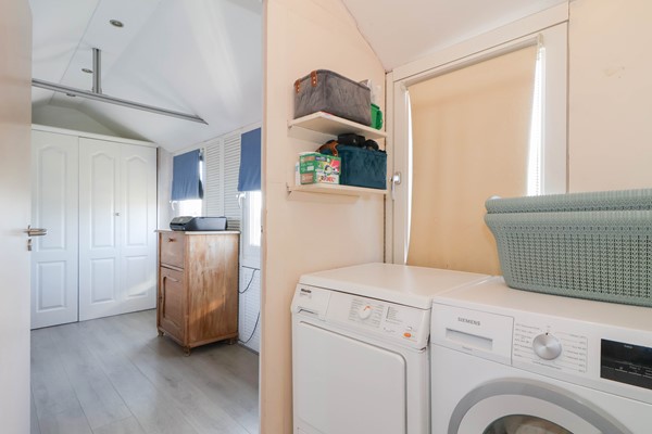 Overloop met wasmachine- en drogeraansluiting. Toegang tot slaapkamer.