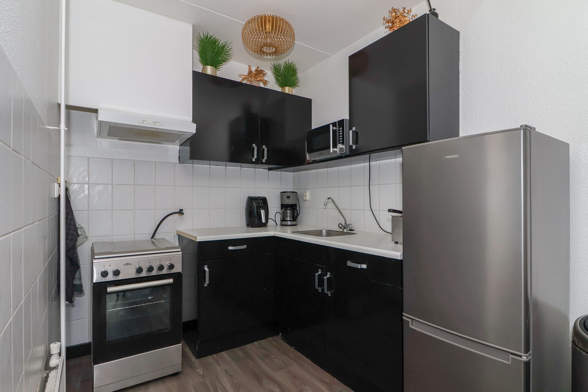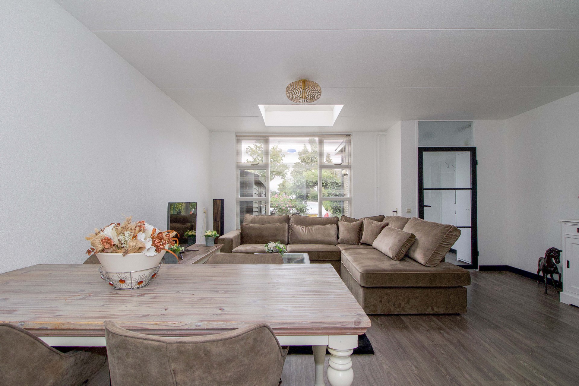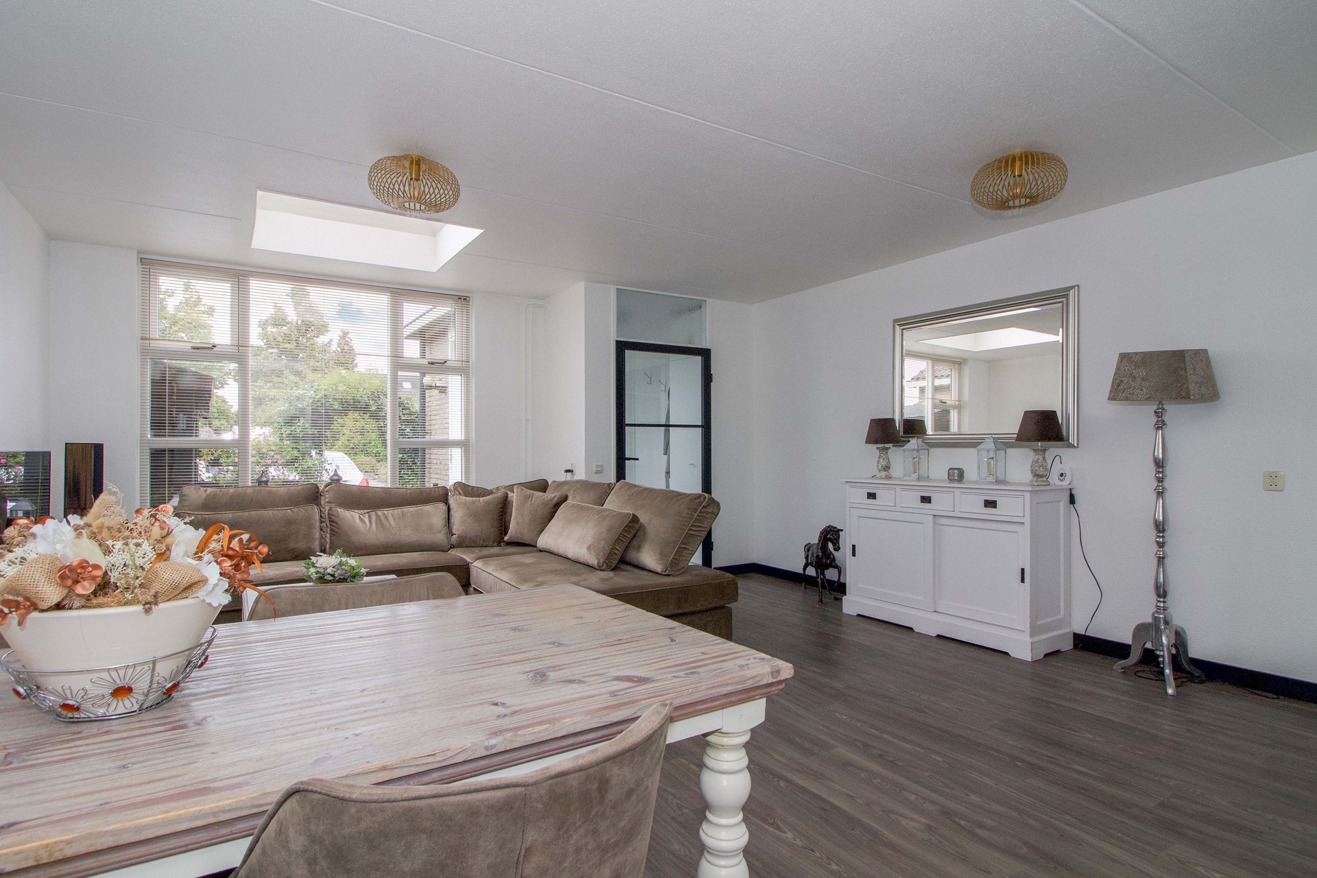 Entree via de hal met meterkast en toegang tot de inpandige berging. De lichte woonkamer biedt veel ruimte en is aan de achterzijde voorzien van een uitbouw. Aan de voorzijde bevindt zich de open keuken in hoekopstelling.