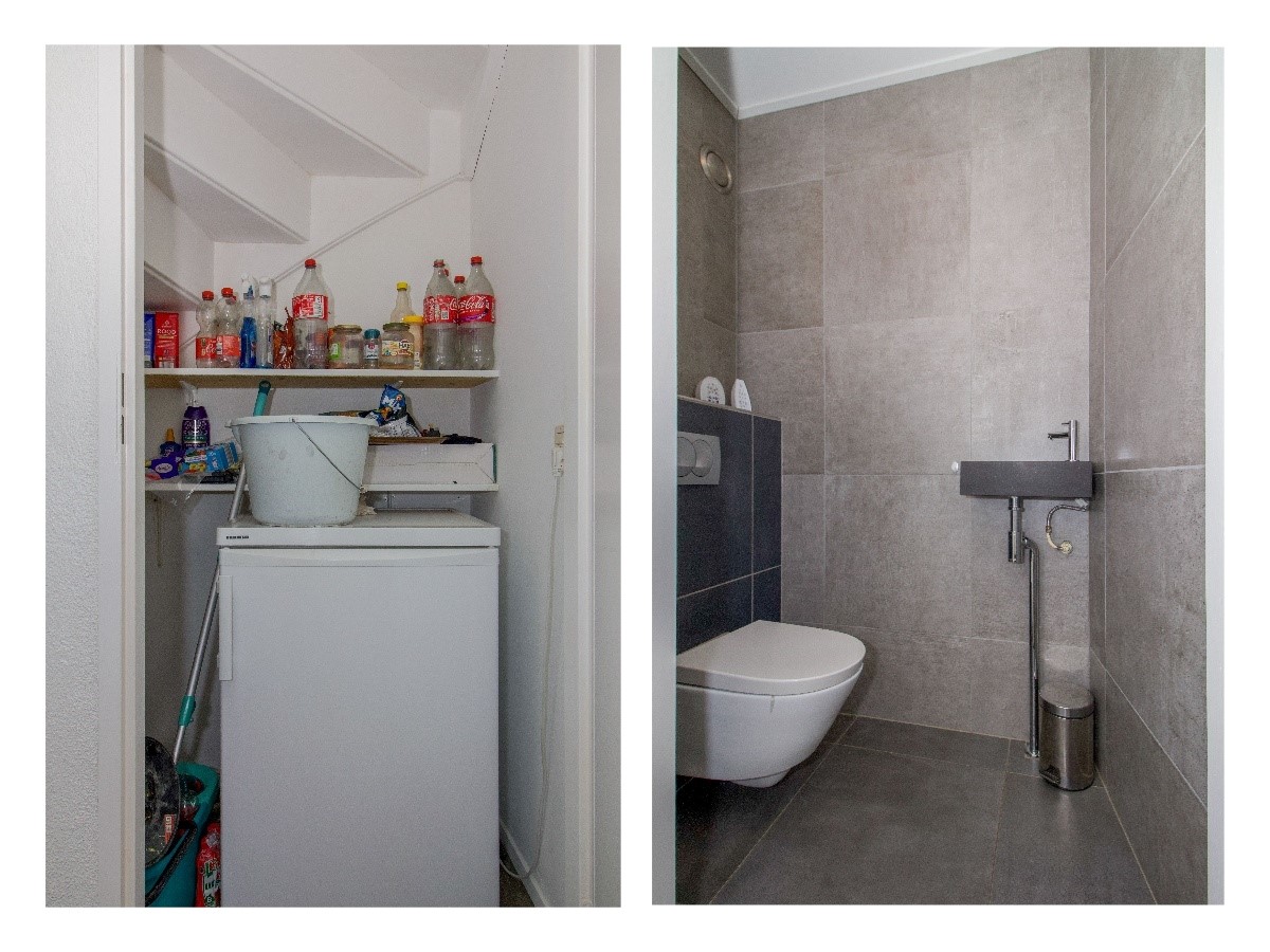 Via een tweede hal zijn het toilet, de trapopgang en een handige trapkast bereikbaar.