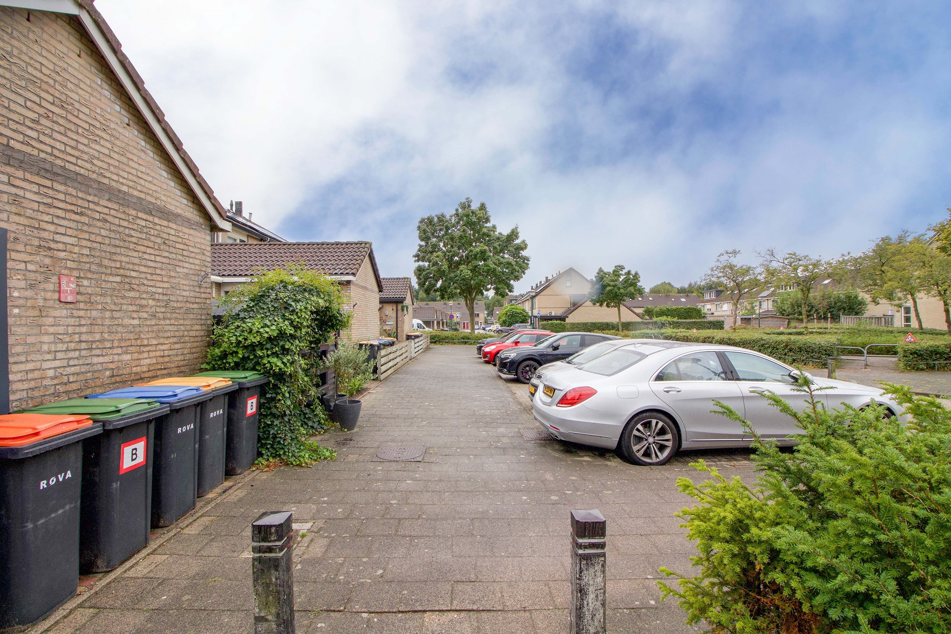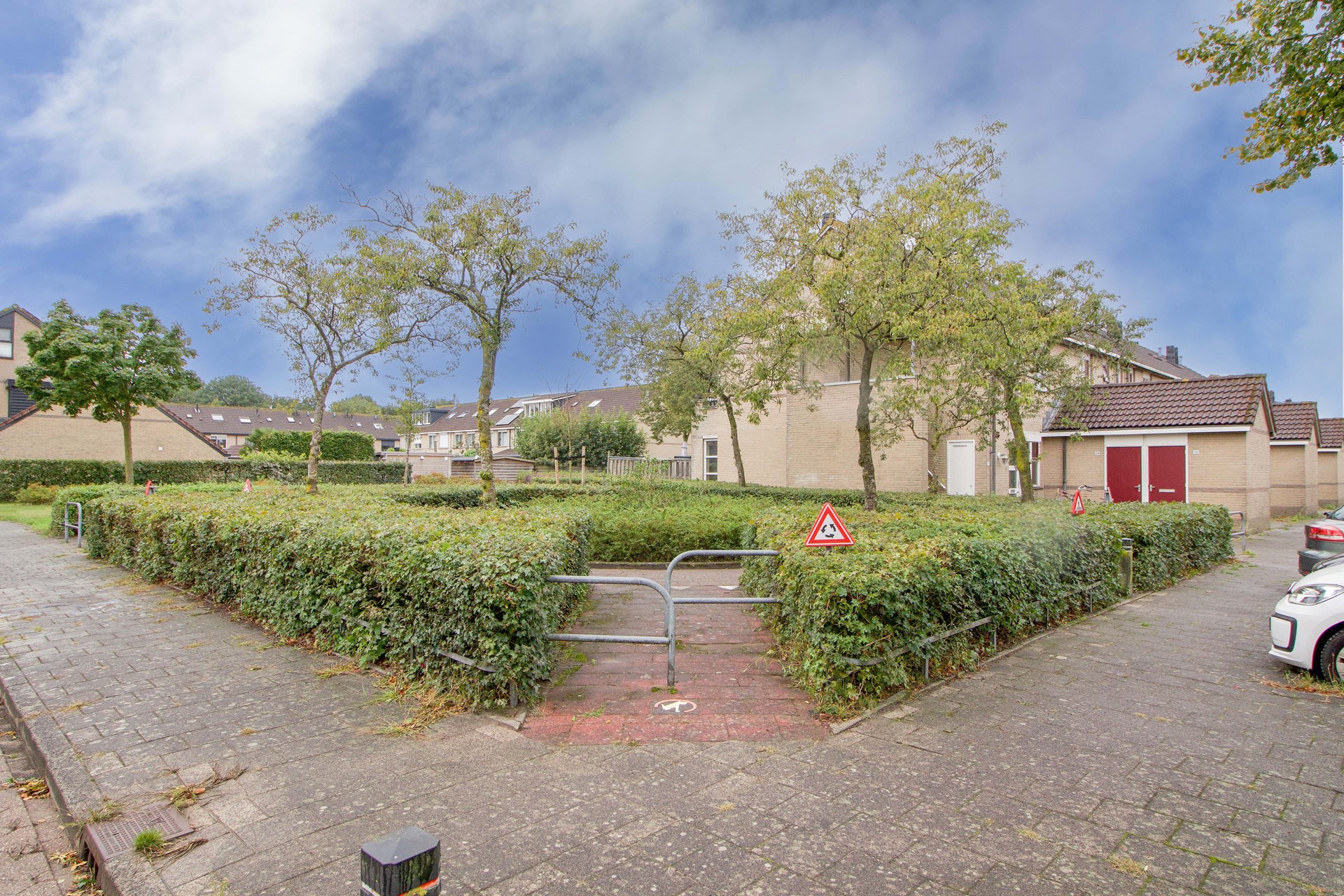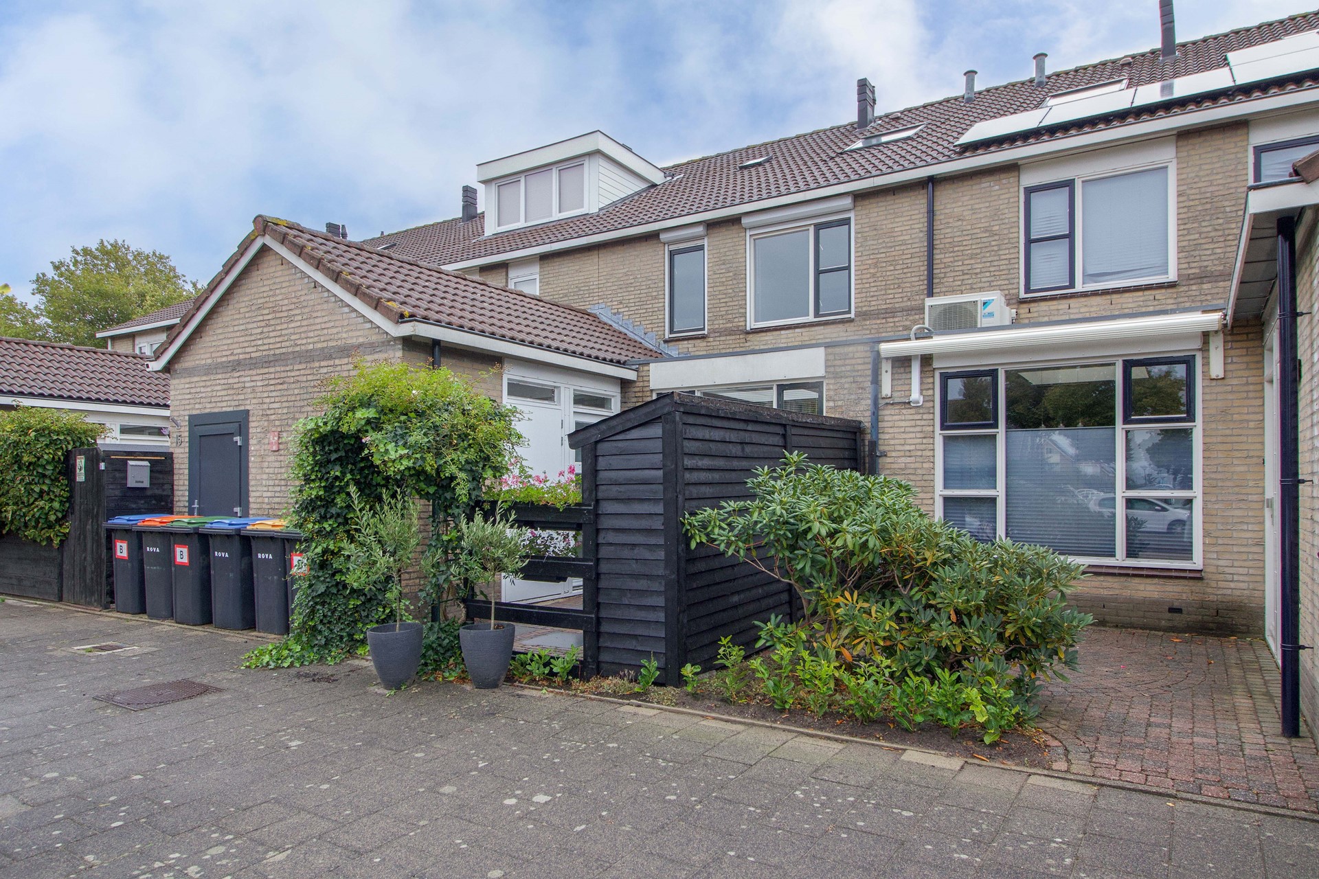Aan de voorzijde van de woning ligt de tuin. Deze is volledig bestraat en beschikt over een houten berging.