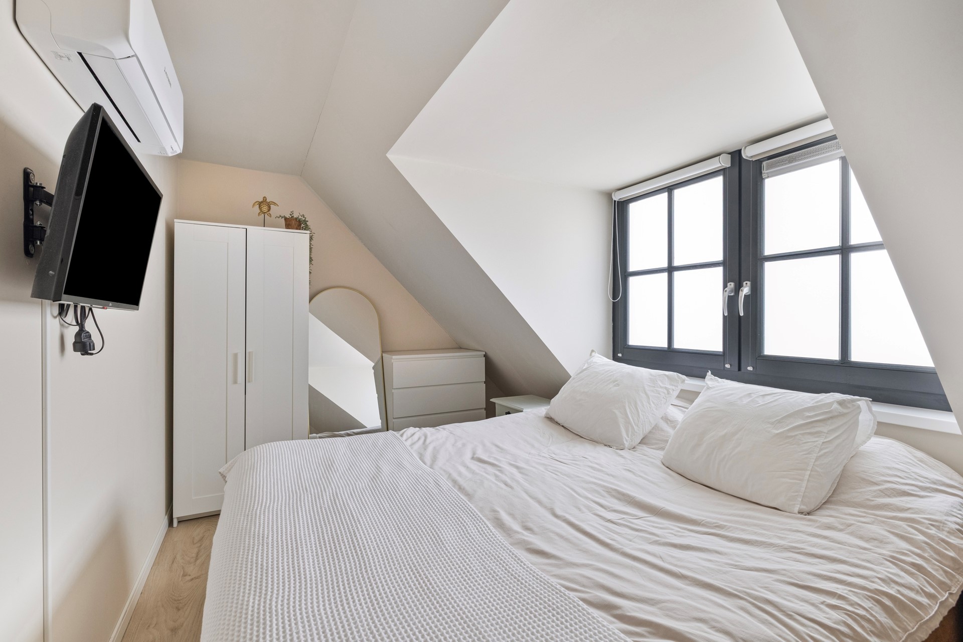 De ruime hoofdslaapkamer is gelegen aan de voorzijde en beschikt over praktische bergruimte onder de schuine kap. De tweede slaapkamer bevindt zich aan de achterzijde en is uitstekend geschikt als kinder-, werk- of logeerkamer.