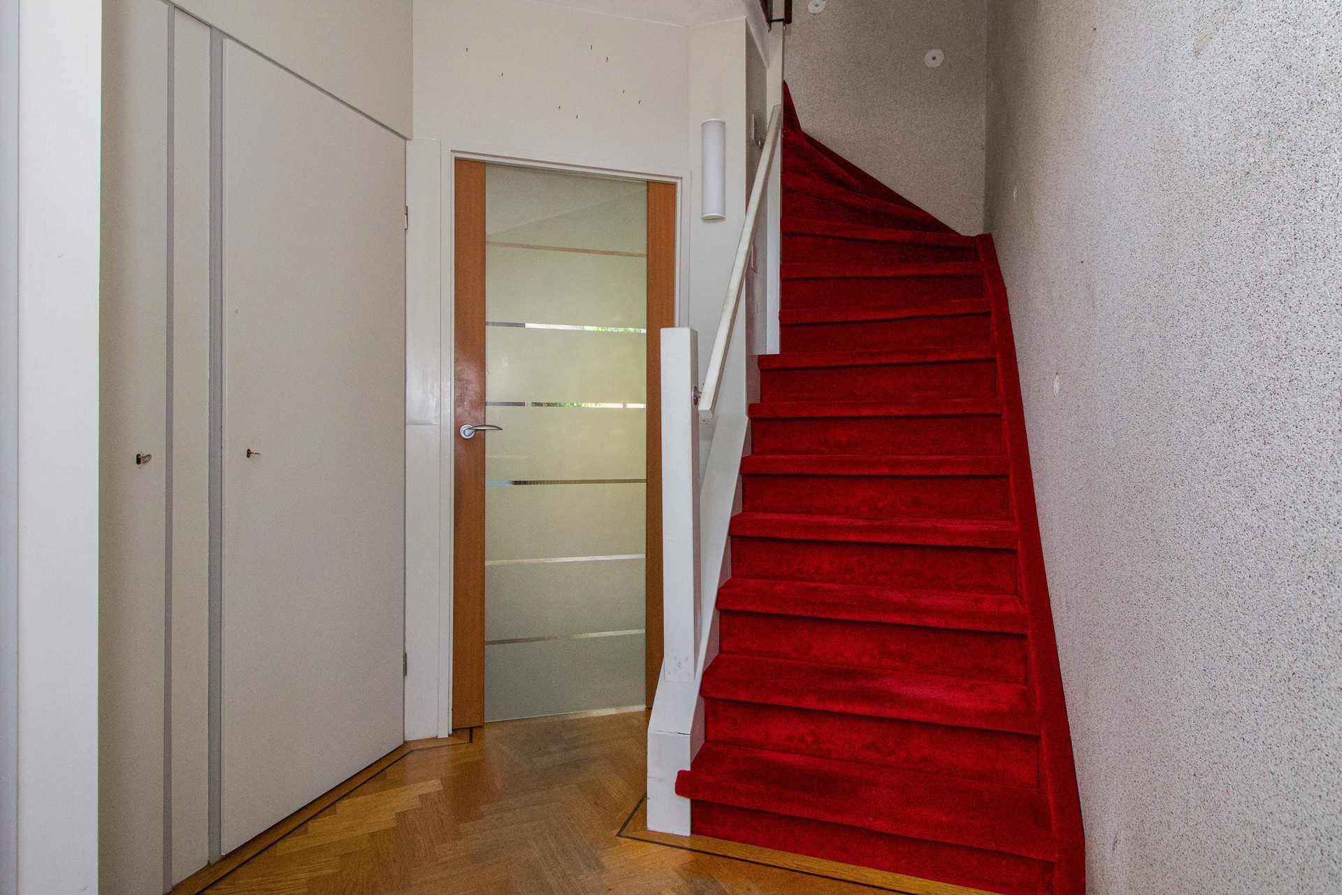 Via de carport bereik je de entree van de woning. In de hal bevinden zich de meterkast, een praktische bergkast, de trapopgang en een separaat toilet.