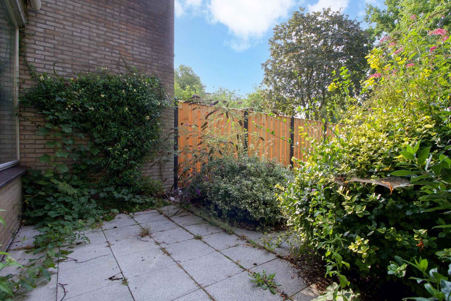 De woning beschikt over een achtertuin met veel groen en volop privacy.