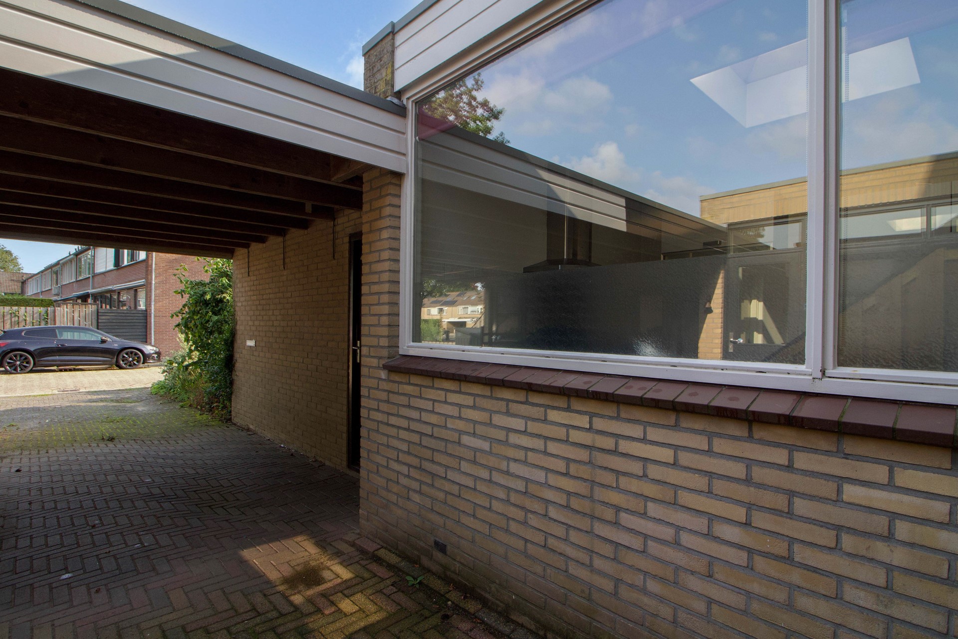 Vanuit de carport is de ruime berging bereikbaar, ideaal voor extra opslag en fietsen.