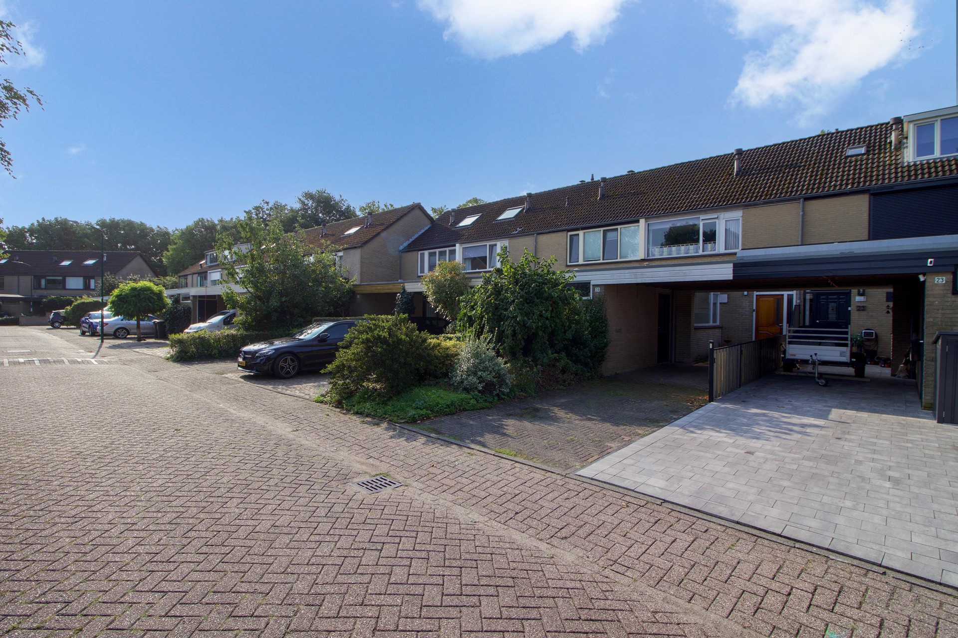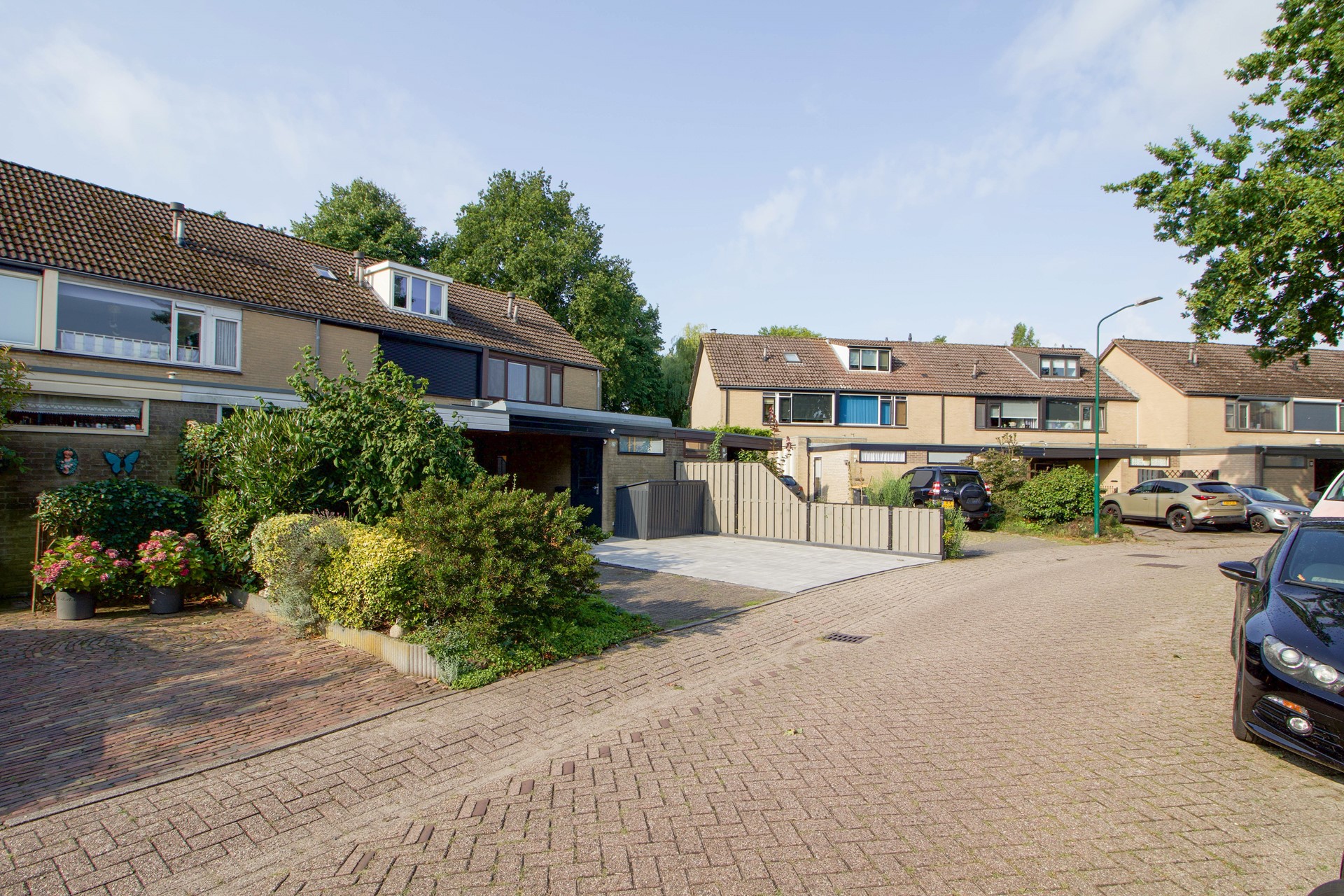 Met een perceel van maar liefst 198 m² geniet je hier van veel buitenruimte. De oprit biedt plaats aan twee auto’s, met de mogelijkheid om eenvoudig een derde plek te creëren. Achter de woning ligt een diepe tuin op het zuiden, waar de zon de hele dag door aanwezig is.