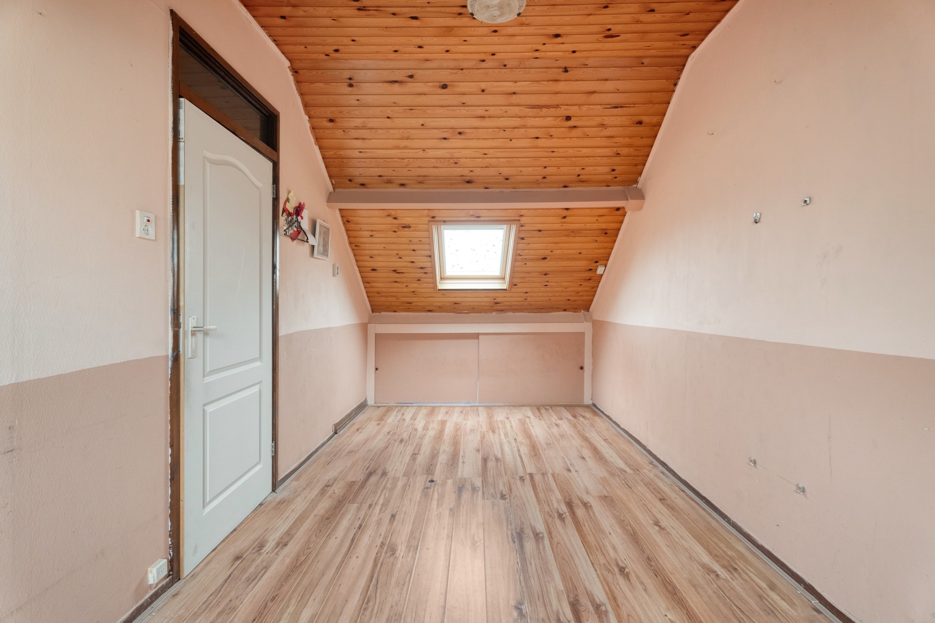 Overloop met toegang tot een ruime zolderkamer. Deze verdieping beschikt over praktische bergruimte, een separate berging en de opstelplaats voor de cv-installatie. Dankzij de goede afmetingen en indeling is deze ruimte uitstekend te gebruiken als extra slaapkamer, werkruimte of hobbykamer.