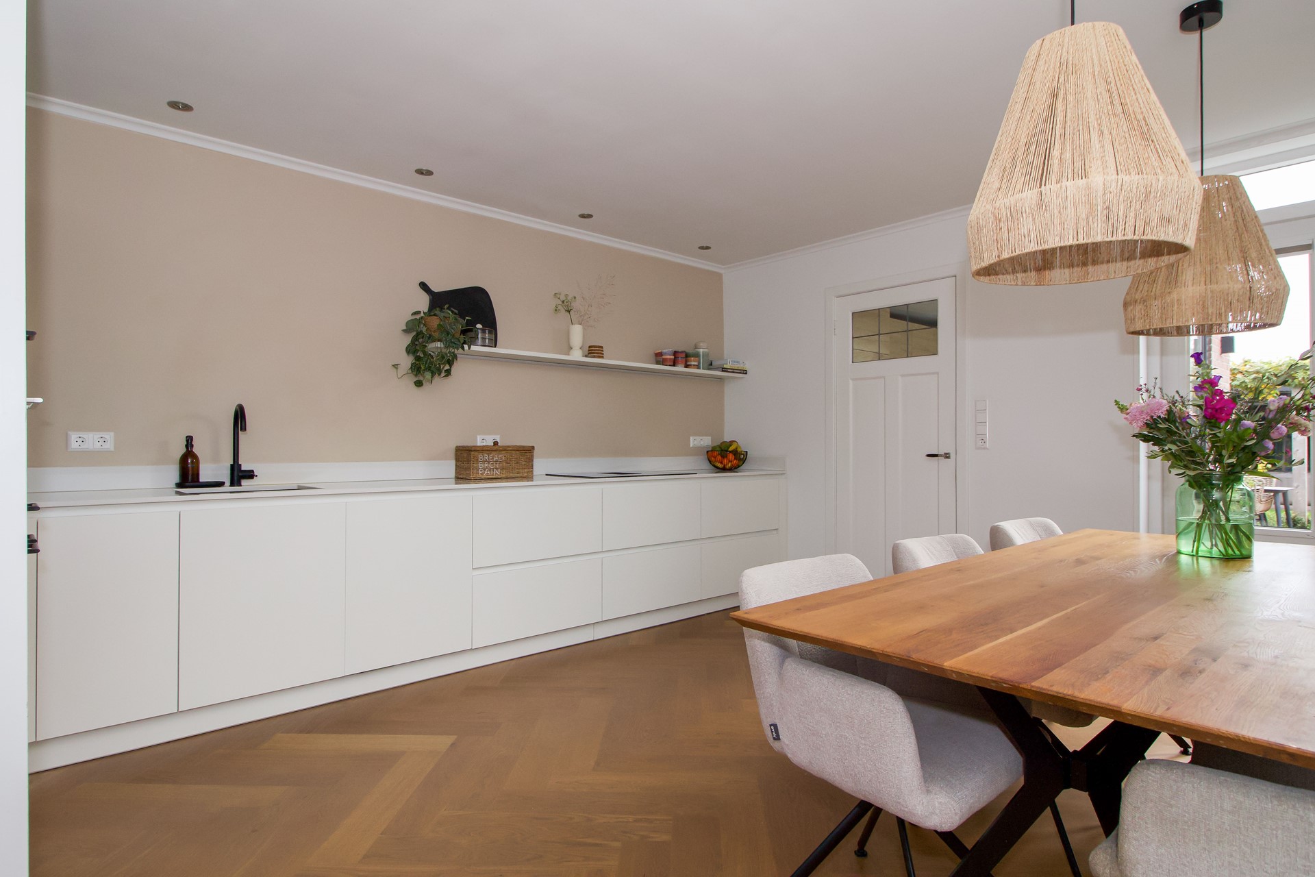Dit is zo’n woning waar je binnenstapt en direct voelt: hier klopt het. De houten vloer, de lichte inrichting en de haard geven de woonkamer een warme, eigentijdse uitstraling. Alles is de afgelopen jaren met smaak vernieuwd, waardoor het geheel een rustige en stijlvolle basis heeft.