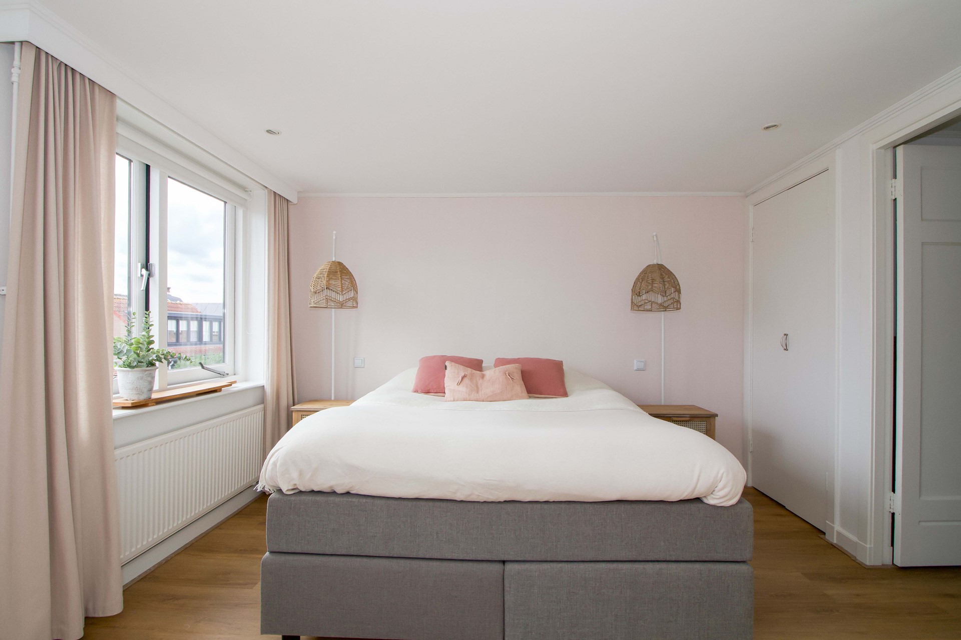 Aan de achterzijde van de woning bevindt zich de royale hoofdslaapkamer. Deze kamer biedt veel ruimte en licht, en beschikt daarnaast over een eigen vaste kast, ideaal voor kleding of extra opbergruimte.