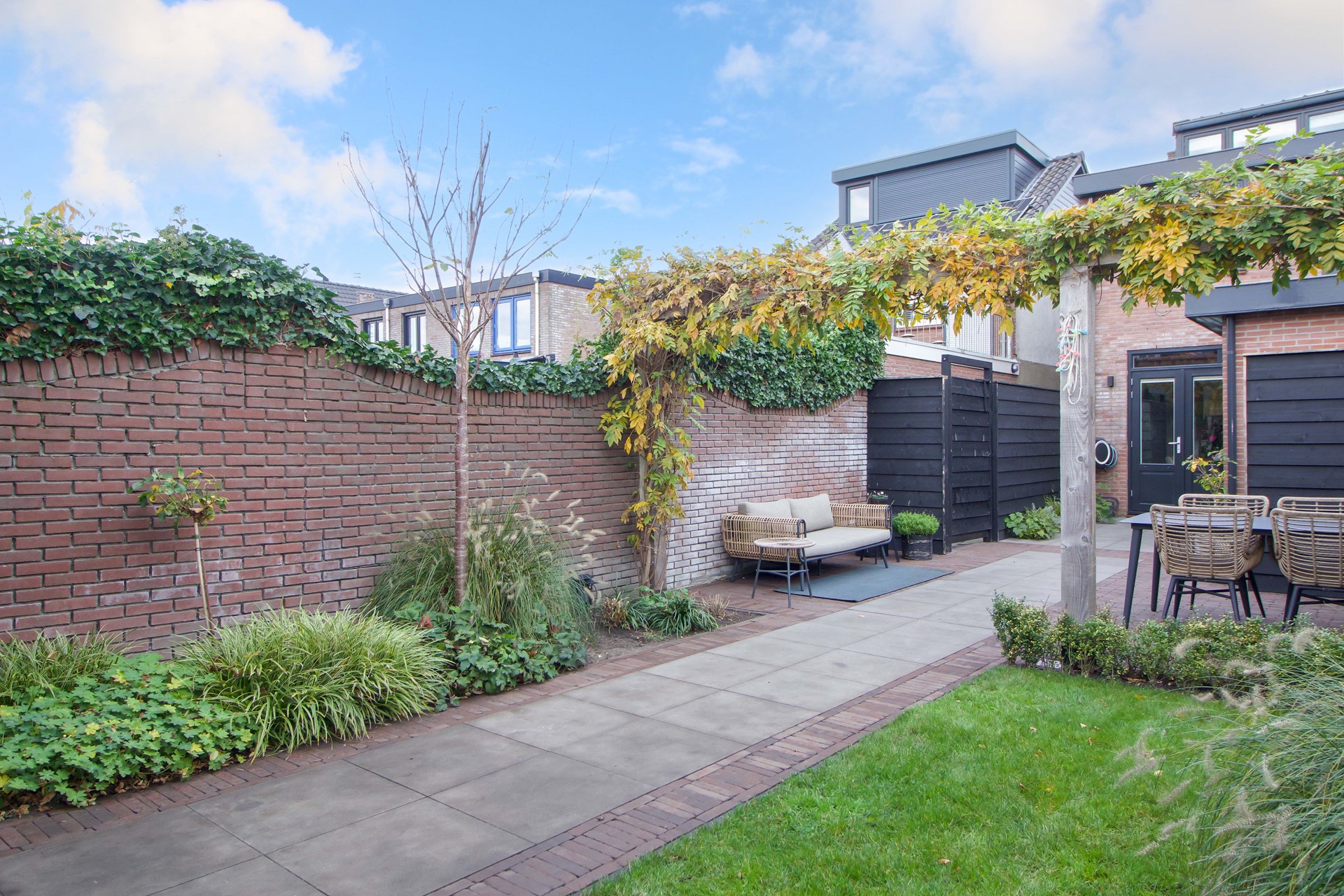 De fraai aangelegde achtertuin is gelegen op het zonnige zuidwesten en biedt hierdoor vrijwel de hele dag optimale zonligging. De tuin is stijlvol ingericht met een combinatie van sierbestrating, groenperkjes en meerdere zithoeken, waardoor er voor elk moment van de dag een fijne plek te vinden is.