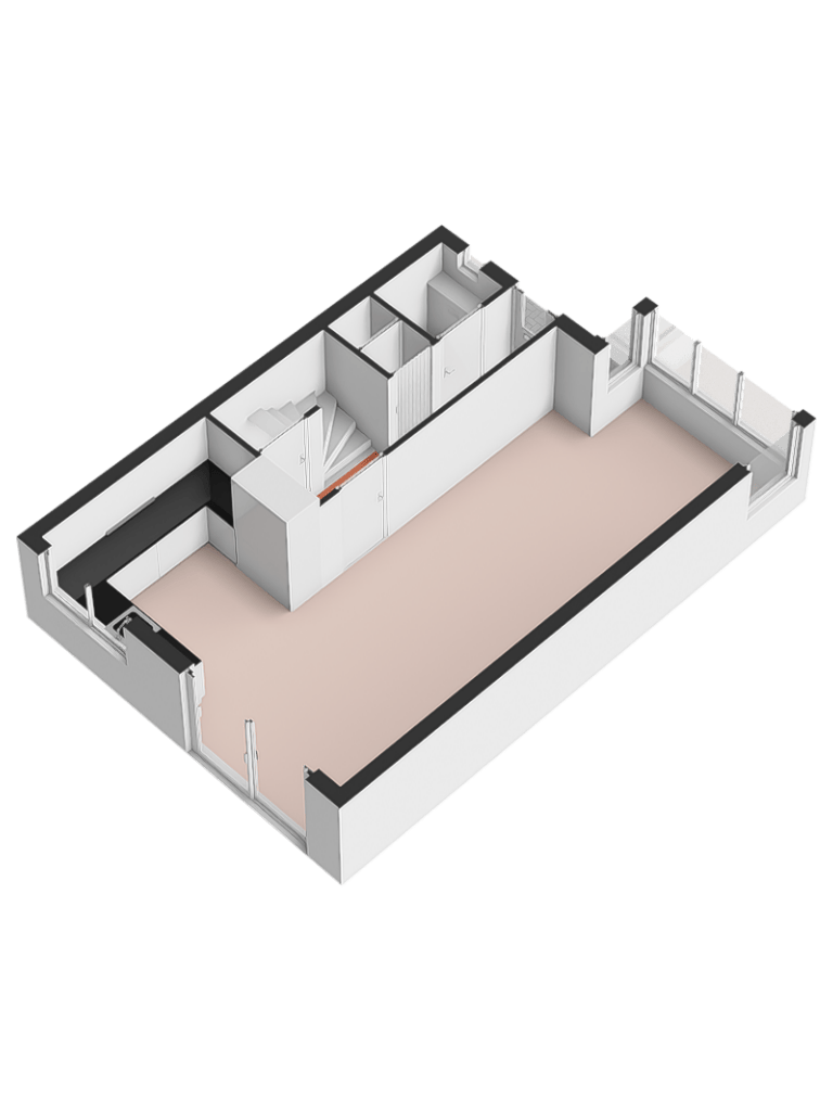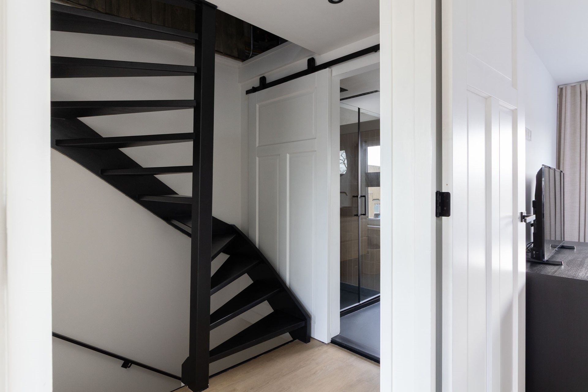Overloop met toegang tot een ruime slaapkamer. Dankzij de schuine kap heeft de ruimte een sfeervol karakter en is deze uitstekend geschikt als extra slaapkamer, werk- of hobbyruimte.