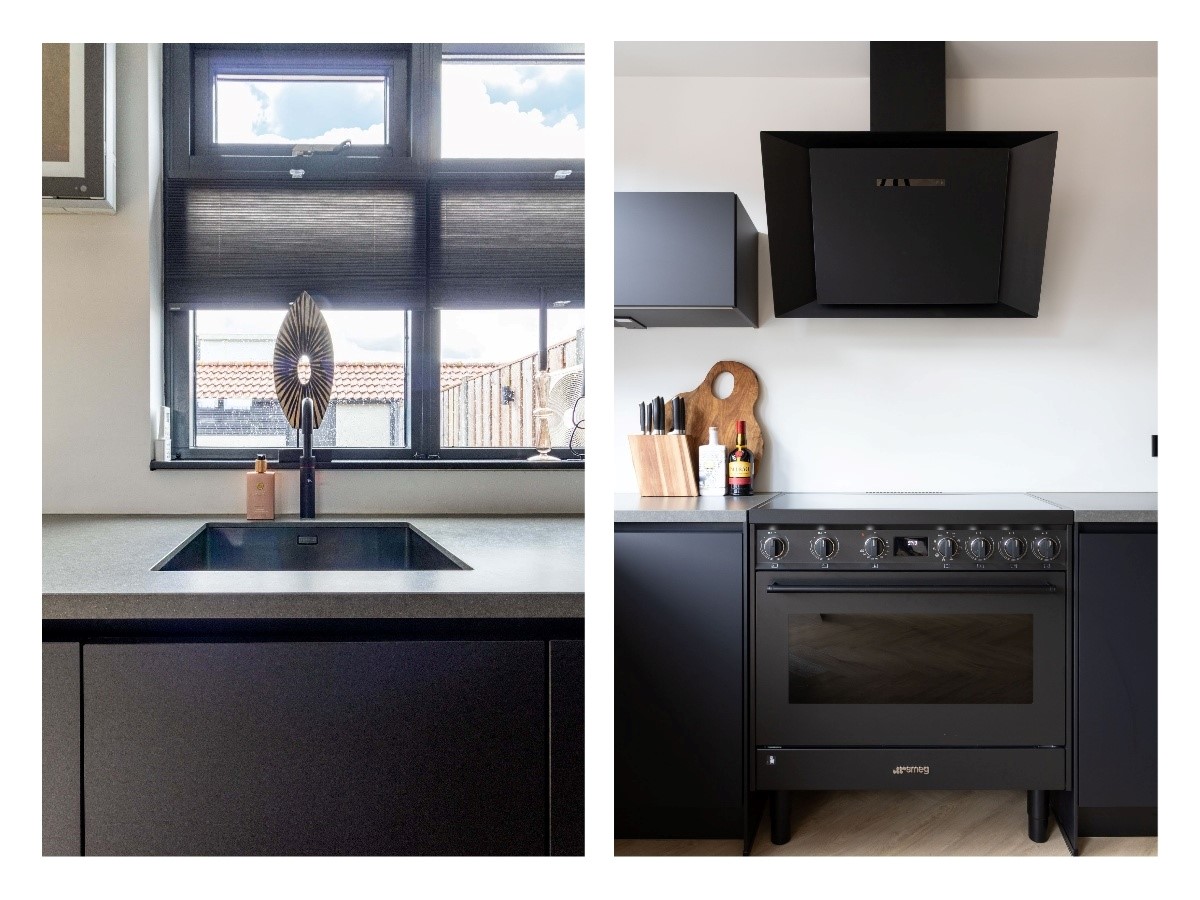 De begane grond is prettig open opgezet en de open keuken zorgt voor een ruimtelijk en uitnodigend geheel. Het is zo’n leefruimte waar koken, tafelen en ontspannen vanzelf in elkaar overlopen.