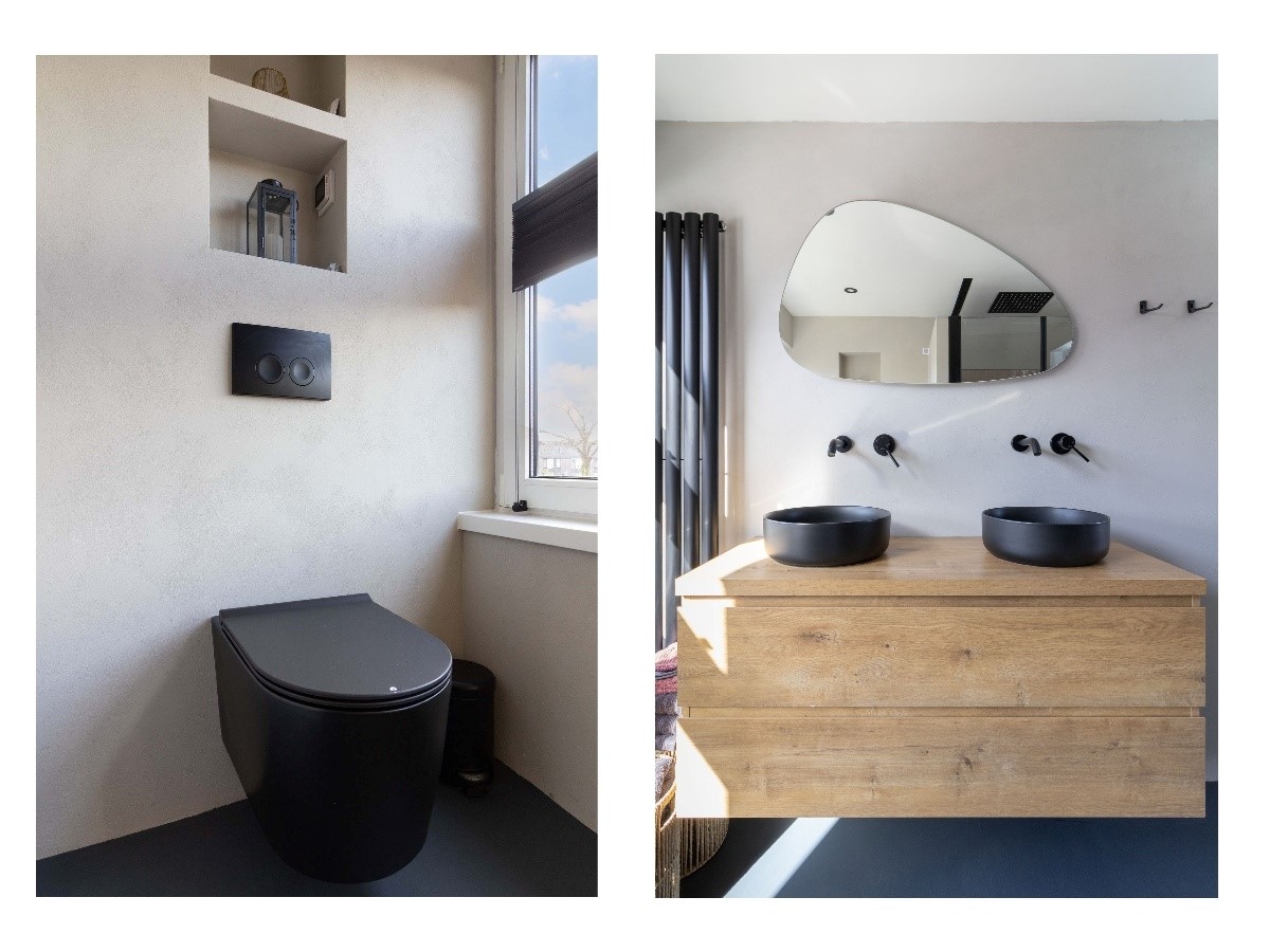 Badkamervoorzieningen Dubbele wastafel, Inloopdouche, Toilet, Wastafelmeubel
