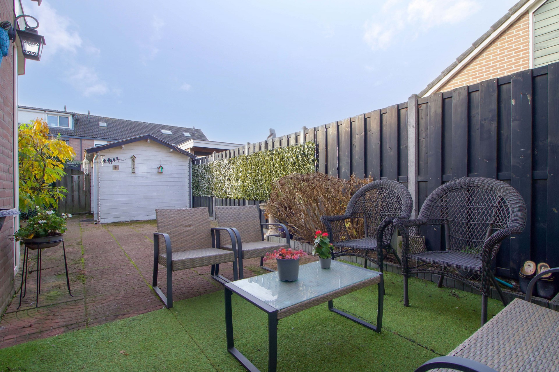De woning beschikt over een achtertuin die volledig is bestraat, waardoor deze onderhoudsvriendelijk is. De tuin biedt volop ruimte voor een gezellige zithoek en een eettafelset, ideaal om in alle rust te genieten van het buitenleven.