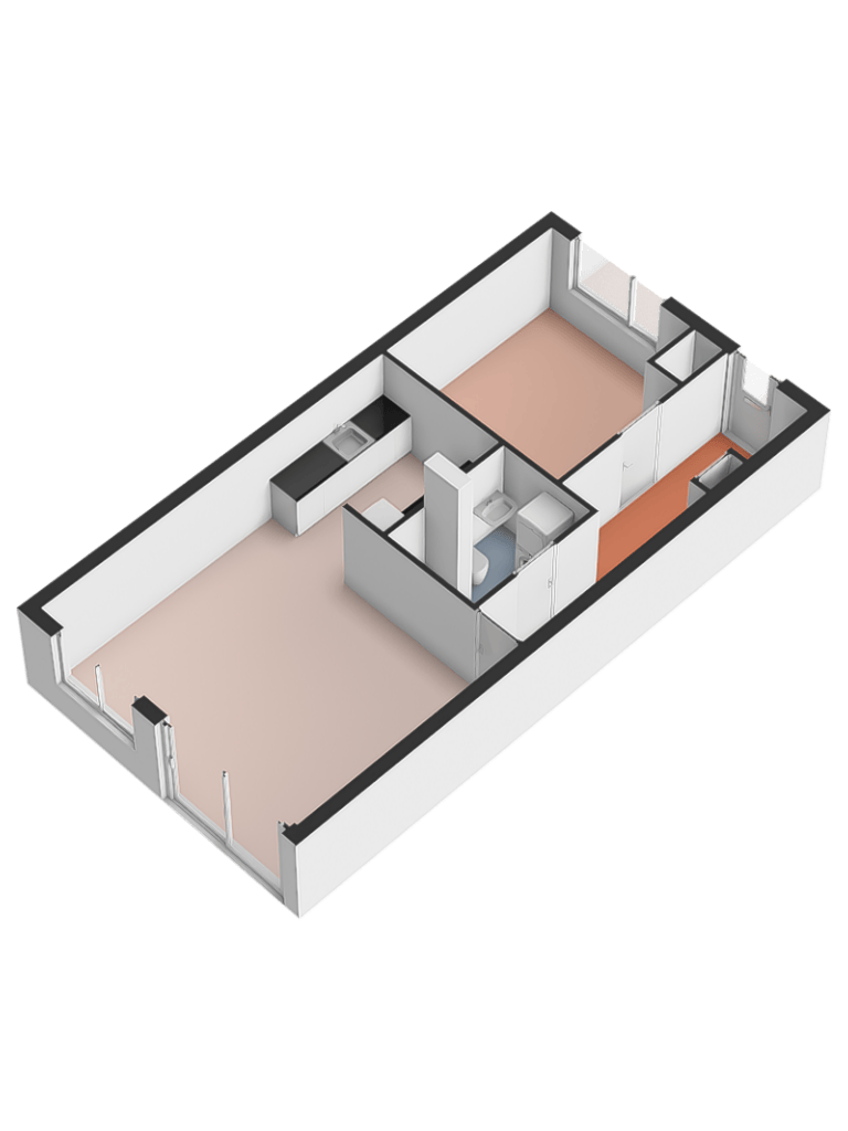 Via de entree bereikt u de hal met toegang tot de meterkast, het toilet, de badkamer en de overige vertrekken. Aan de achterzijde van de woning bevindt zich de ruime woonkamer met veel lichtinval. Centraal in de woning ligt de badkamer, voorzien van douche en wastafel. De keuken is eveneens centraal gelegen en uitgerust met de nodige voorzieningen. Aan de voorzijde bevindt zich de slaapkamer.