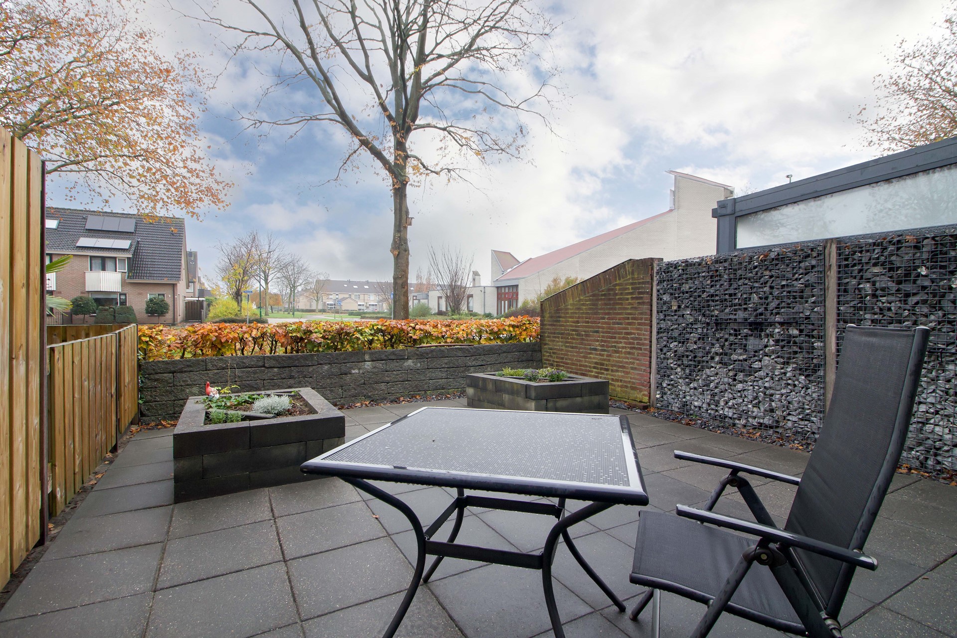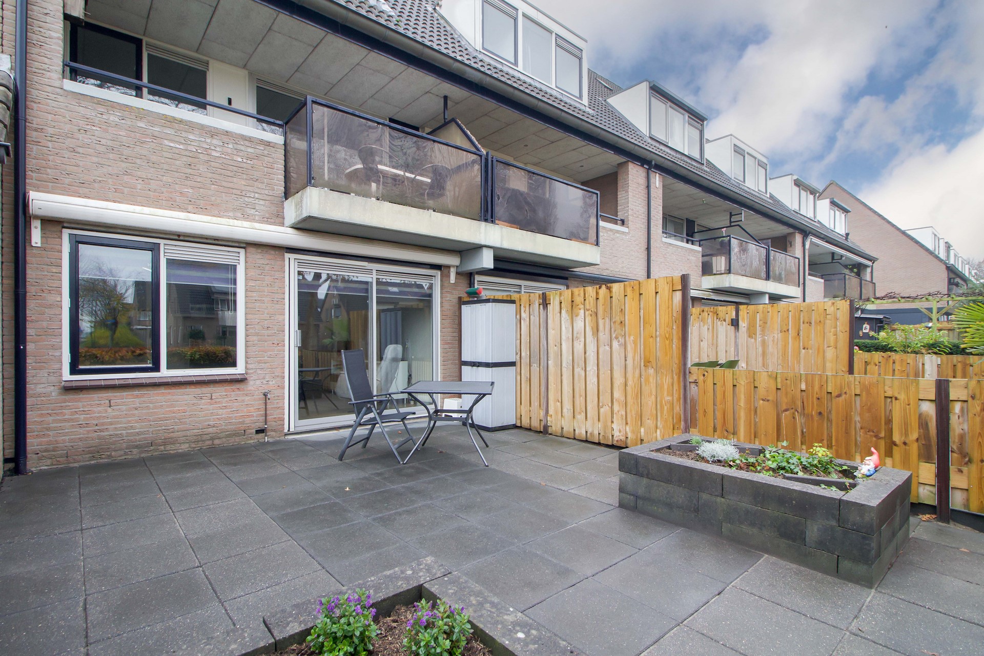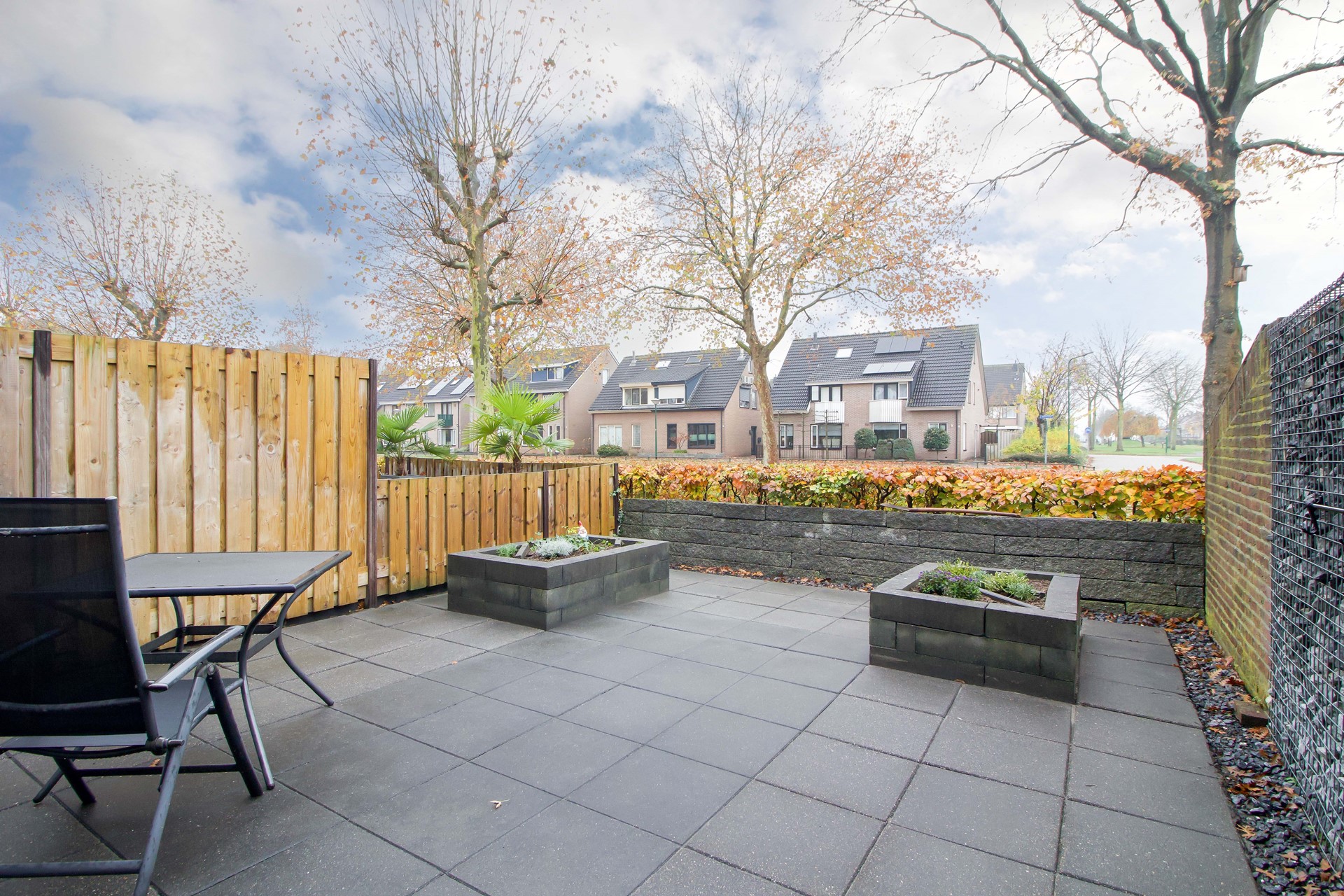De woning beschikt over een ruime, onderhoudsvriendelijke achtertuin, gelegen op het westen. Hierdoor geniet u tot in de late middag en avond van de zon. De tuin is volledig bestraat en biedt voldoende ruimte voor meerdere zithoeken. Aan weerszijden zorgen houten schuttingen en een robuuste steenkorf-afscheiding voor veel privacy. Daarnaast zijn er enkele verhoogde plantenbakken aanwezig, waardoor groen en gemak mooi samengaan. De ligging aan een rustige, groene omgeving zorgt voor een prettig vrij uitzicht.