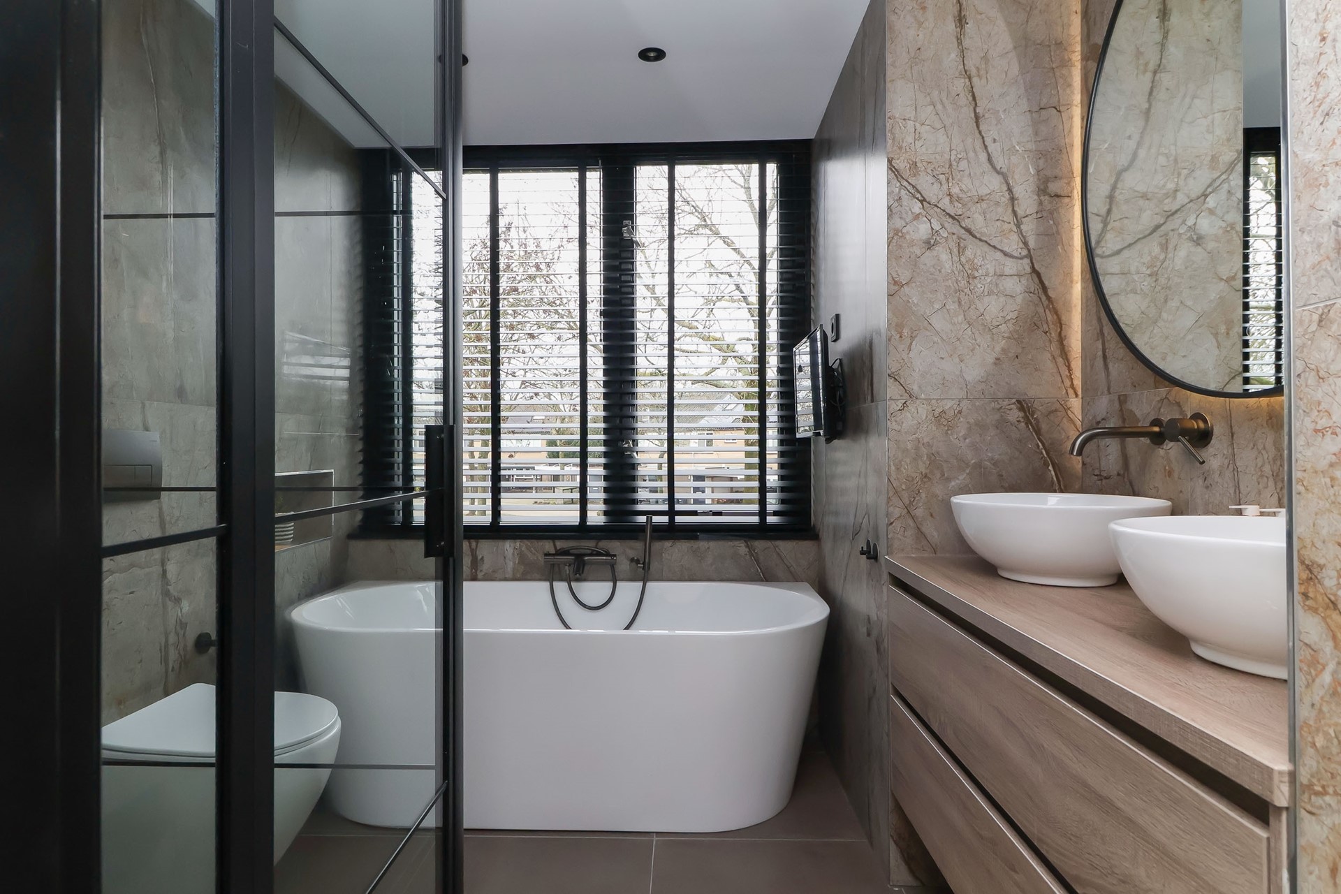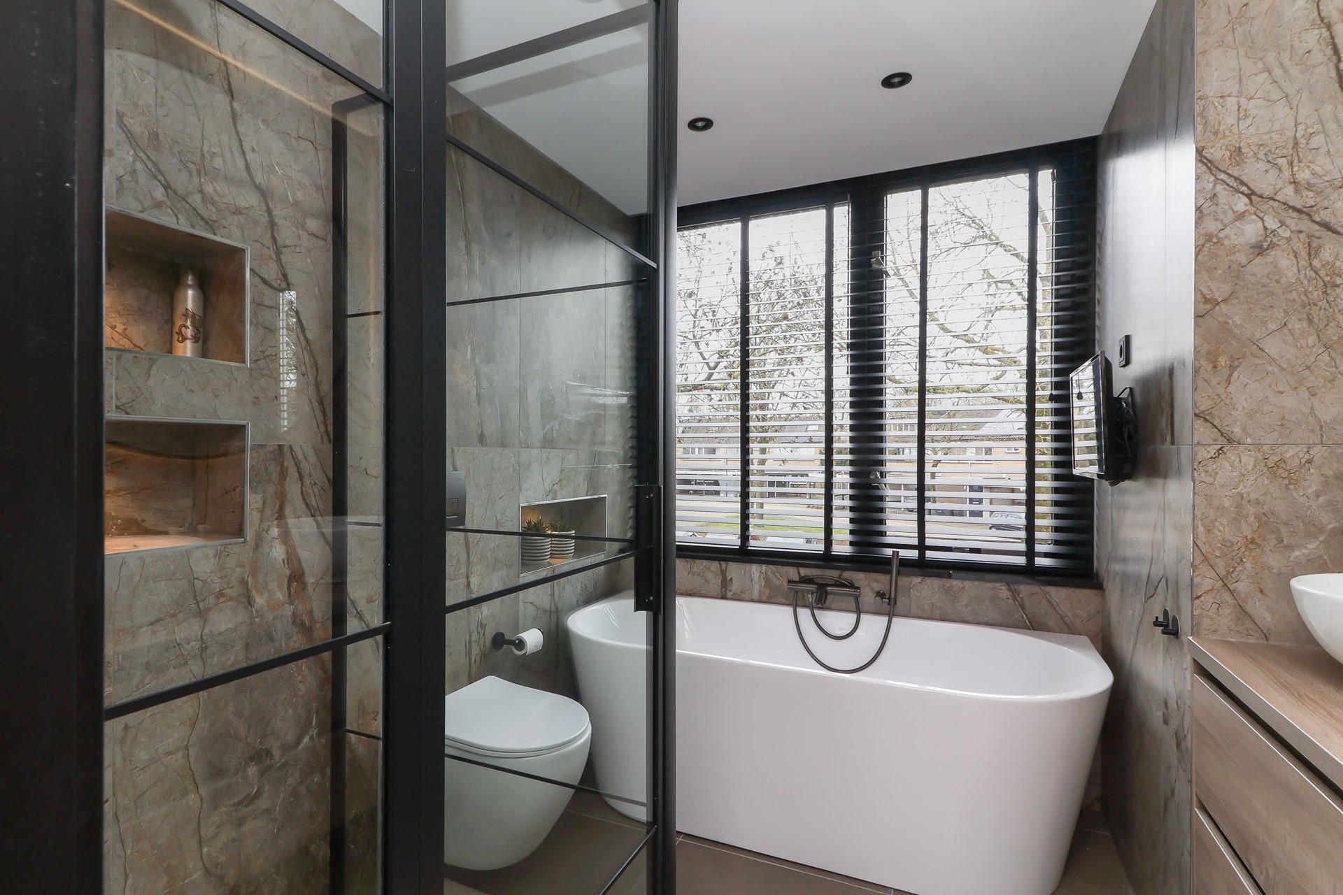 Op de eerste verdieping bevinden zich twee verzorgde slaapkamers en een badkamer die zo uit een woonmagazine lijkt te komen. Met zowel een bad als een douche is dit een plek om heerlijk te ontspannen. De zolderverdieping biedt een derde slaapkamer met volop licht en ruimte, ideaal als masterbedroom, werkkamer of logeerkamer.