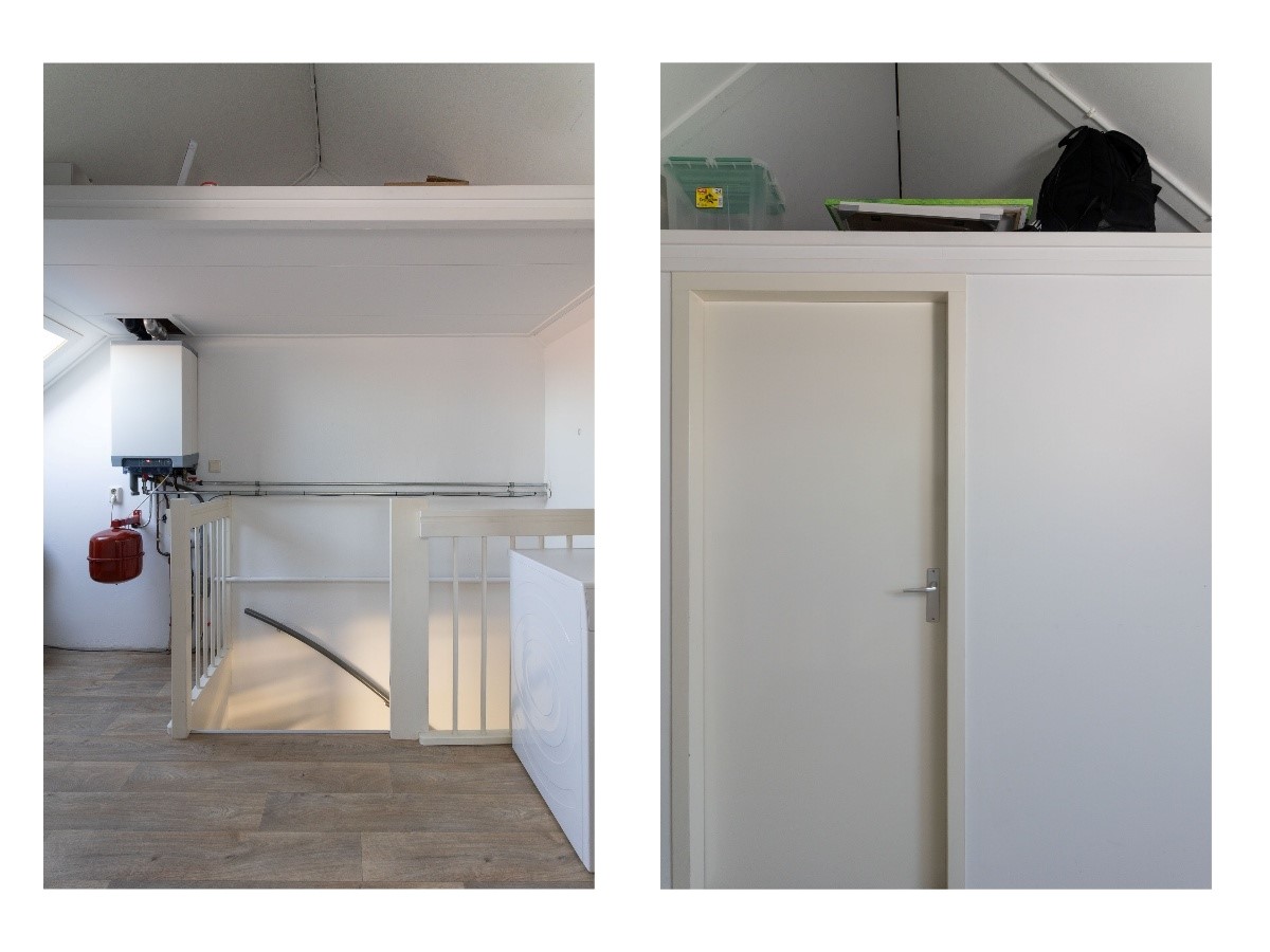 Via vaste trap bereikbare zolderverdieping met overloop en een slaapkamer. De overloop is ruim opgezet en biedt plaats aan de cv-installatie en wasmachineaansluiting. Daarnaast is er een separate kast aanwezig voor extra bergruimte. De slaapkamer beschikt over daglicht en is geschikt als extra slaap-, werk- of hobbykamer. Door de nokhoogte van circa 3,22 meter voelt deze verdieping verrassend ruim aan en biedt zij diverse gebruiksmogelijkheden.