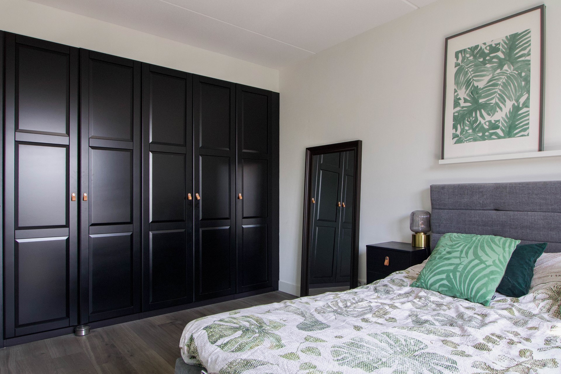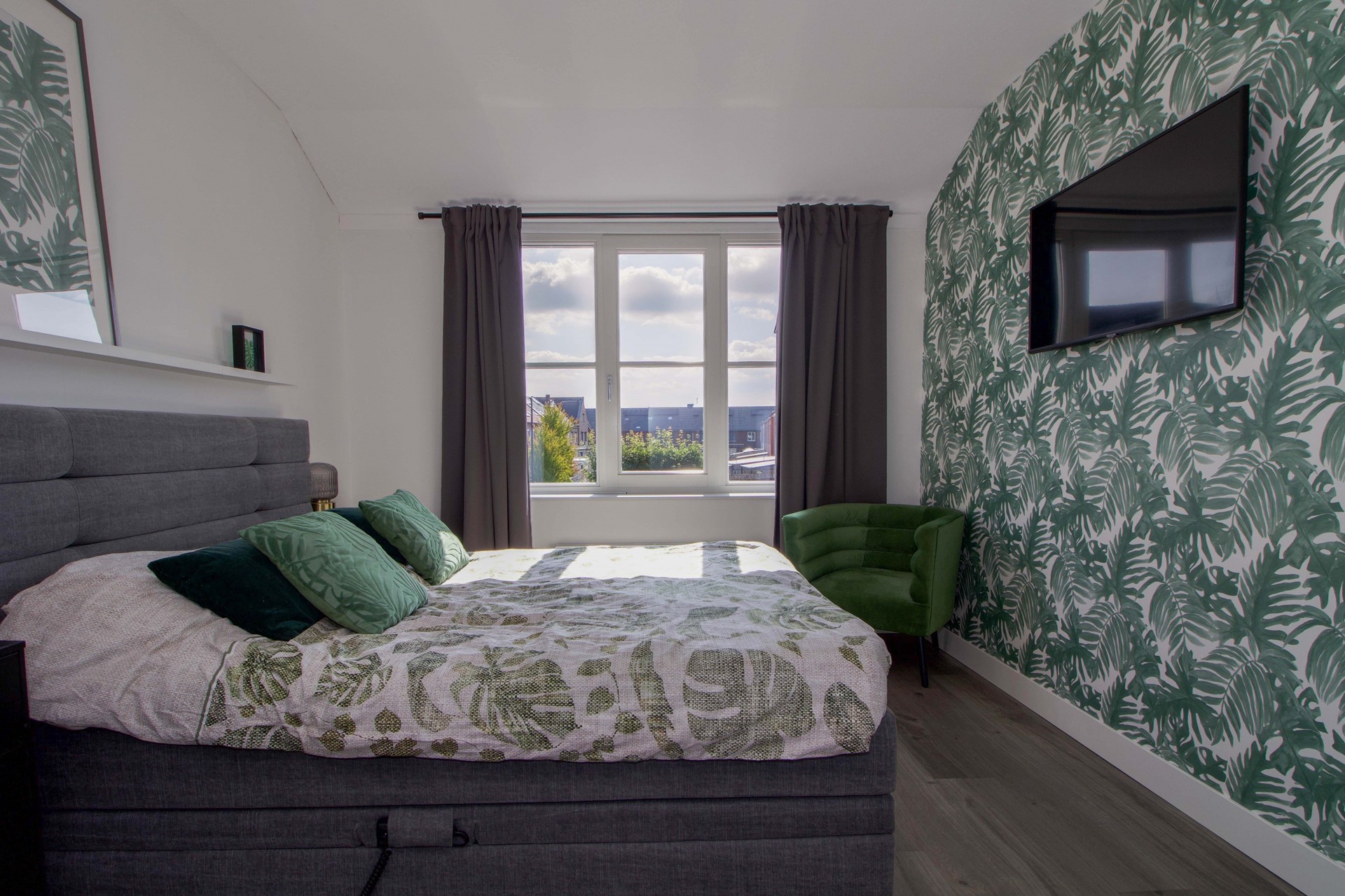 Aan de voorzijde van de woning bevindt zich een royale hoofdslaapkamer met genoeg ruimte voor een grote kast, ideaal voor het netjes opbergen van kleding en accessoires. De kamer is licht en ruim, en biedt voldoende plaats voor een groot bed en extra meubilair.