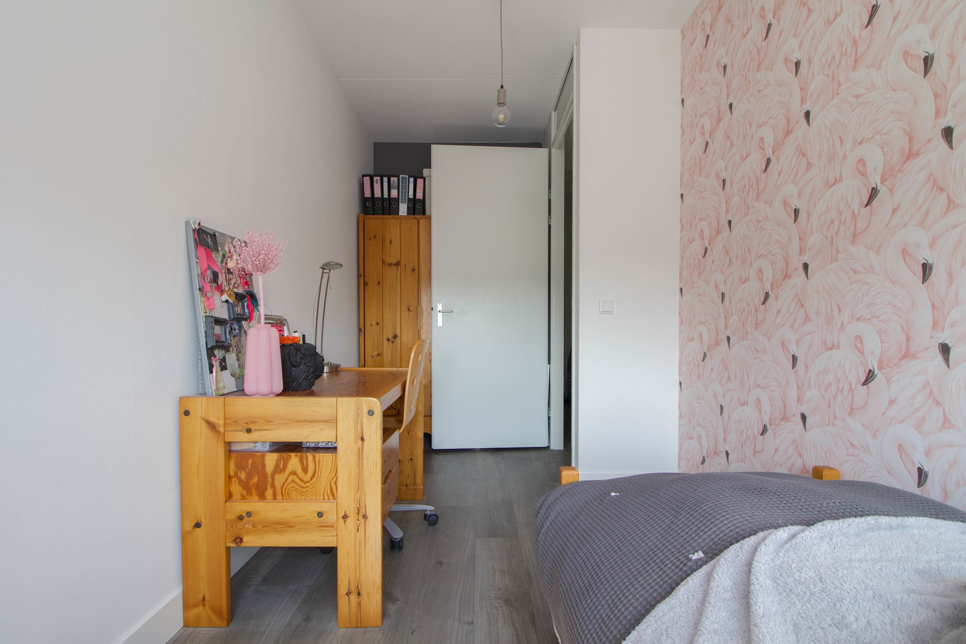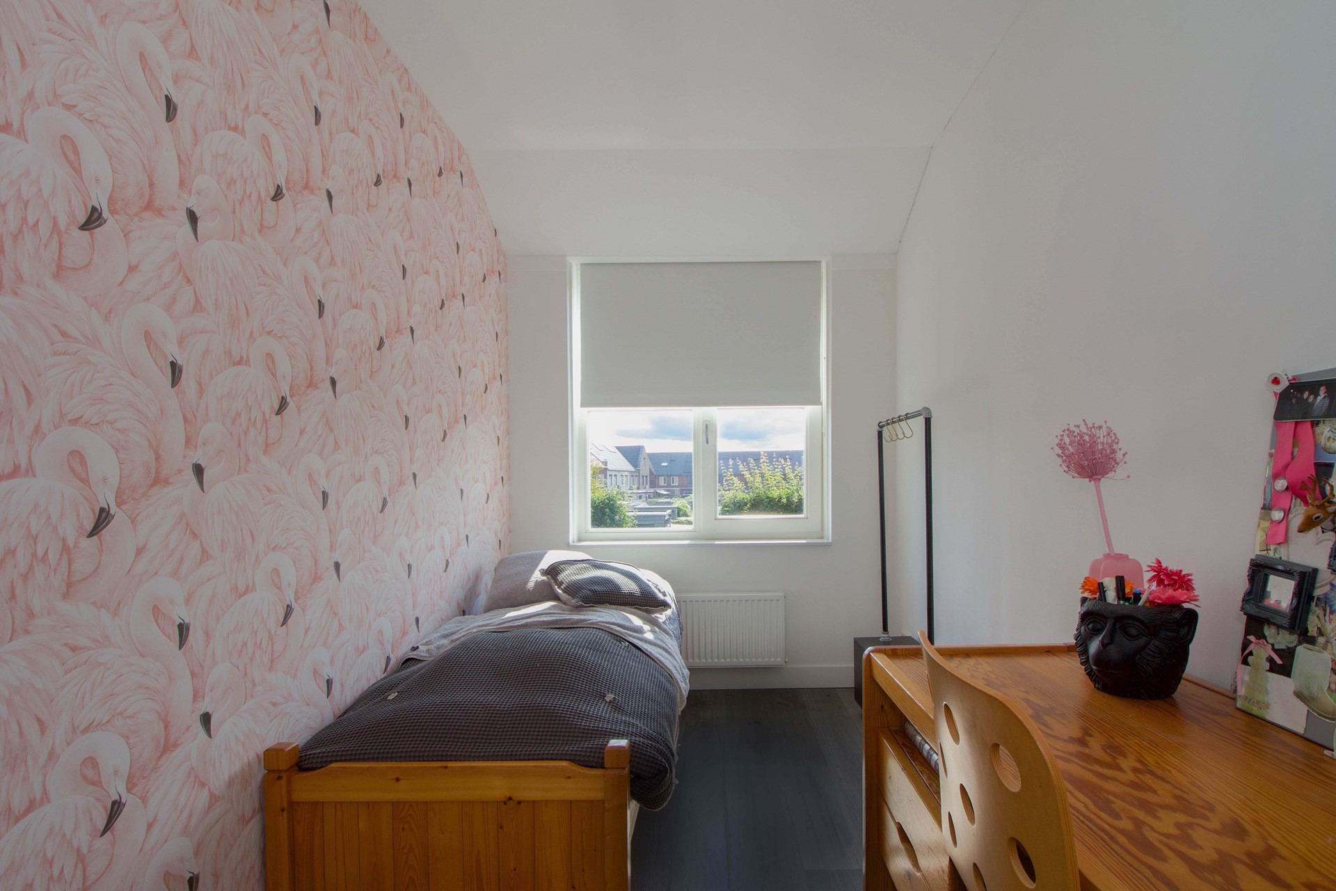 De tweede slaapkamer ligt aan de achterzijde van de woning en is eveneens goed van formaat. Deze kamer leent zich uitstekend als kinder-, werk- of logeerkamer.