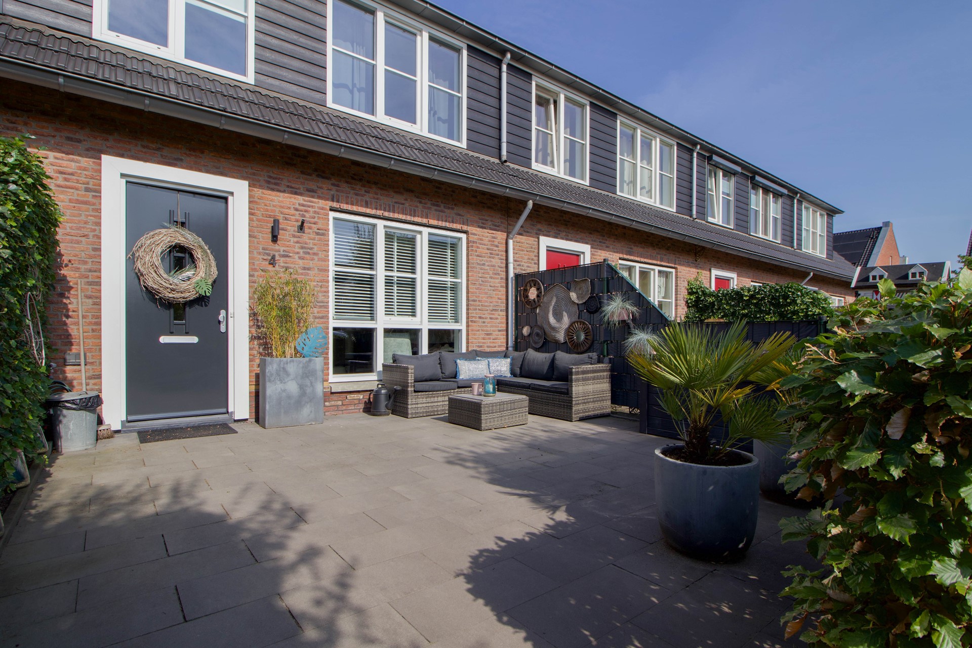 De voortuin biedt daarnaast veel privacy, mede dankzij de stijlvolle erfafscheiding en het slimme gebruik van beplanting. Hier combineer je comfort met gezelligheid – een ideale plek om de dag ontspannen te beginnen met een kop koffie, of juist af te sluiten met een drankje in de avondzon.