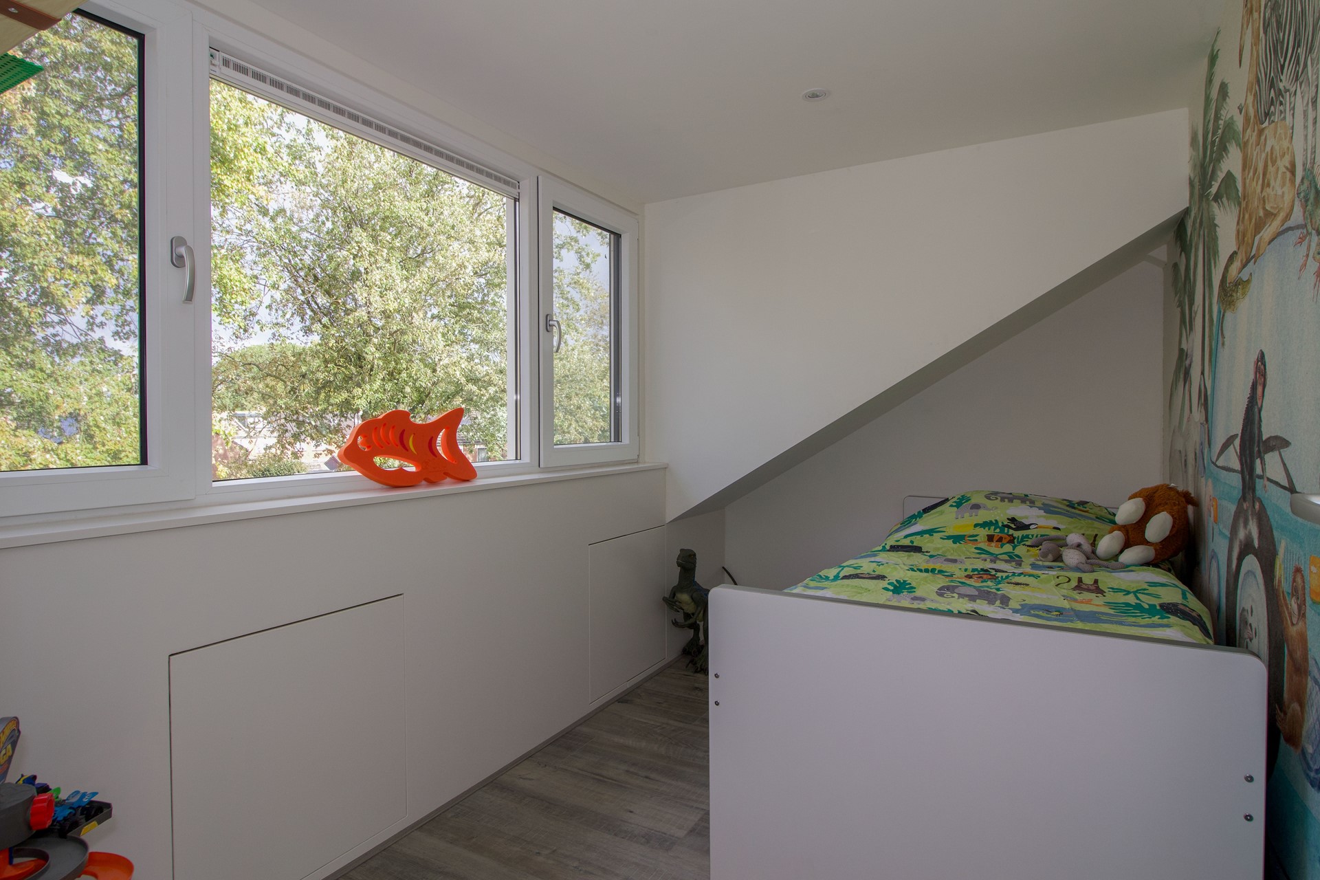 Twee ruime kamers gerealiseerd door dakopbouw en dakkapel (2022).