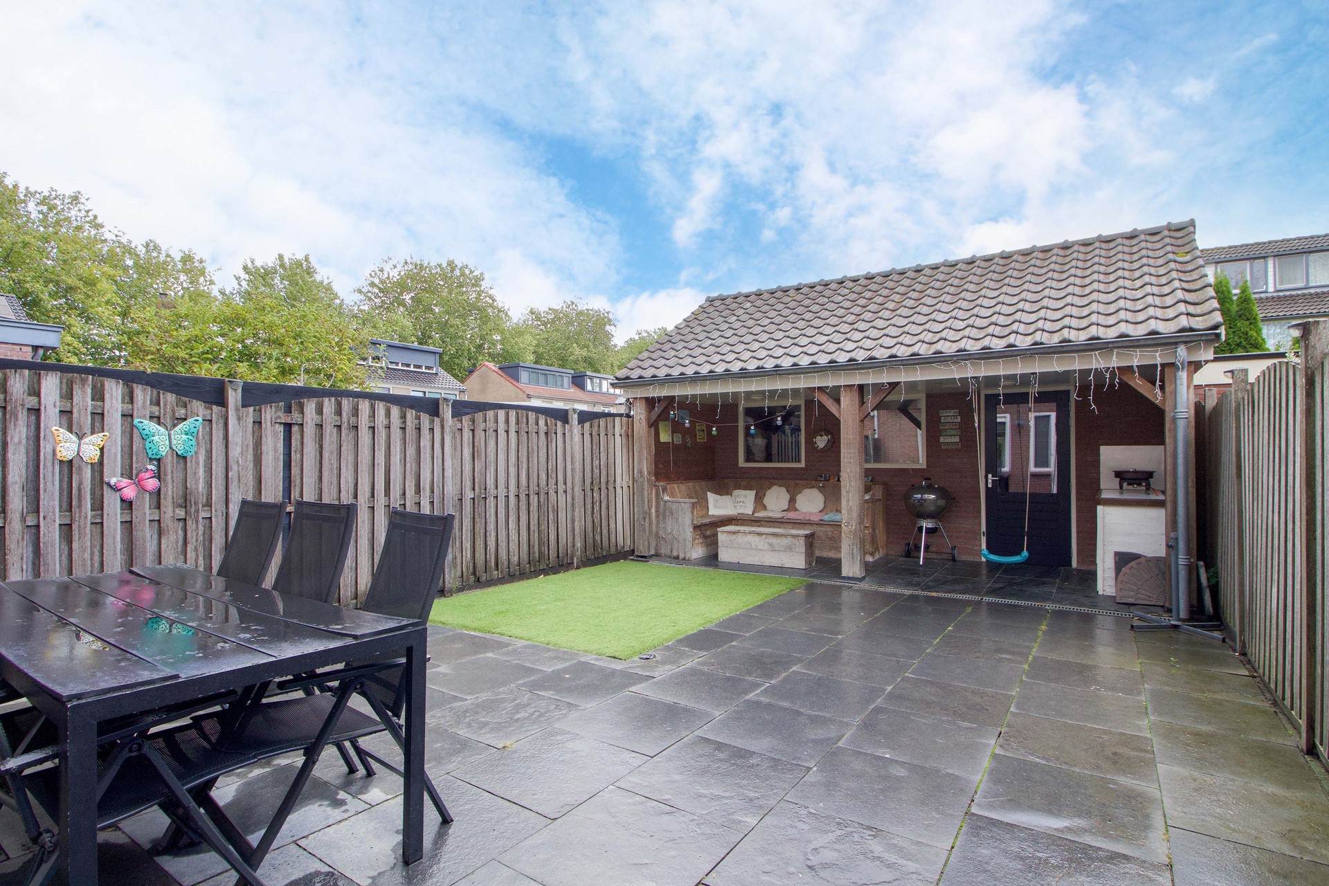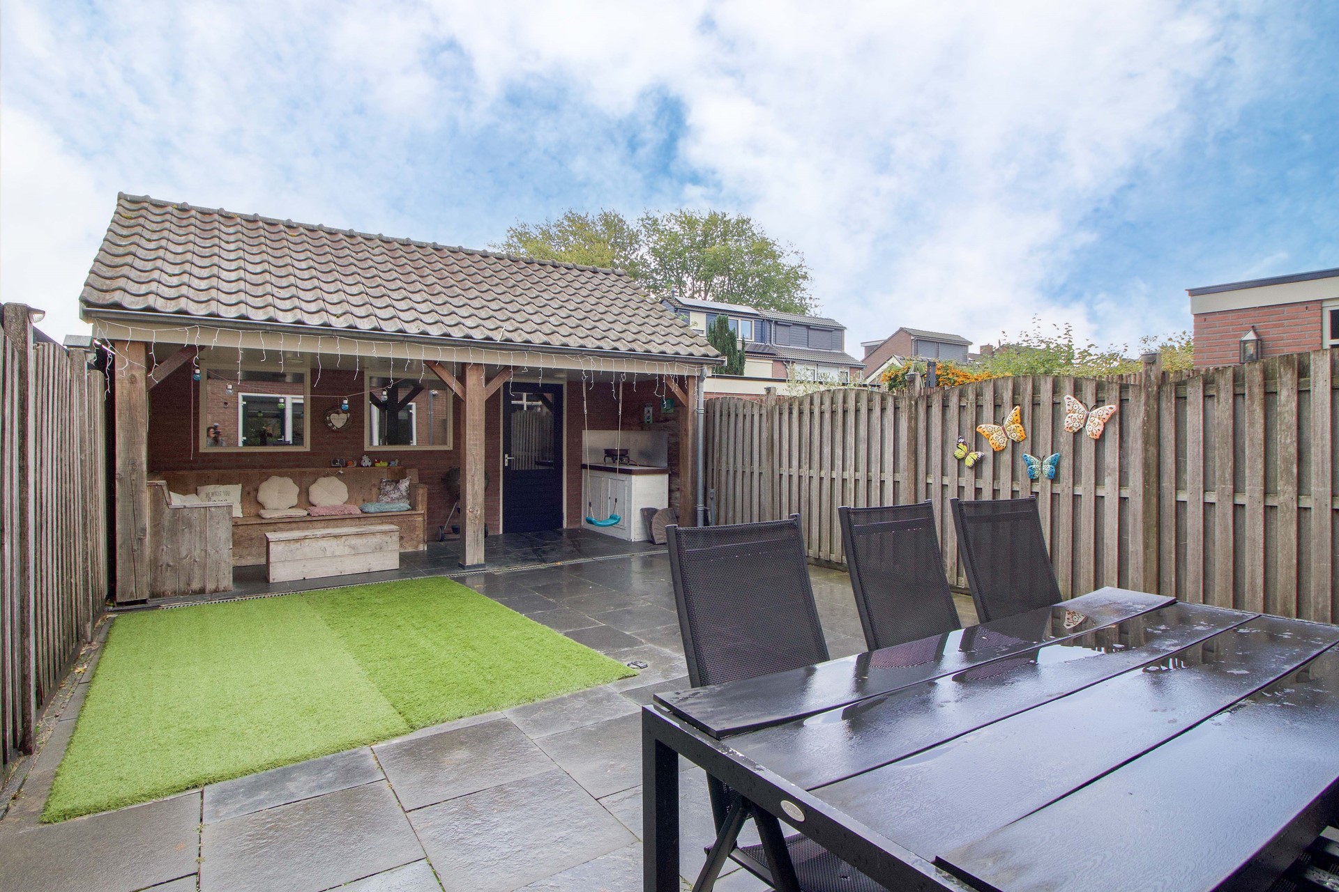 Ook buiten is het genieten. Op een perceel van maar liefst 158 m² ligt een diepe tuin waar je zowel kinderen kunt laten spelen als zelf heerlijk tot rust komt. Helemaal achterin staat een royale schuur met daarvoor een veranda, perfect om lange avonden buiten door te brengen en praktisch voor al je opslag en fietsen.