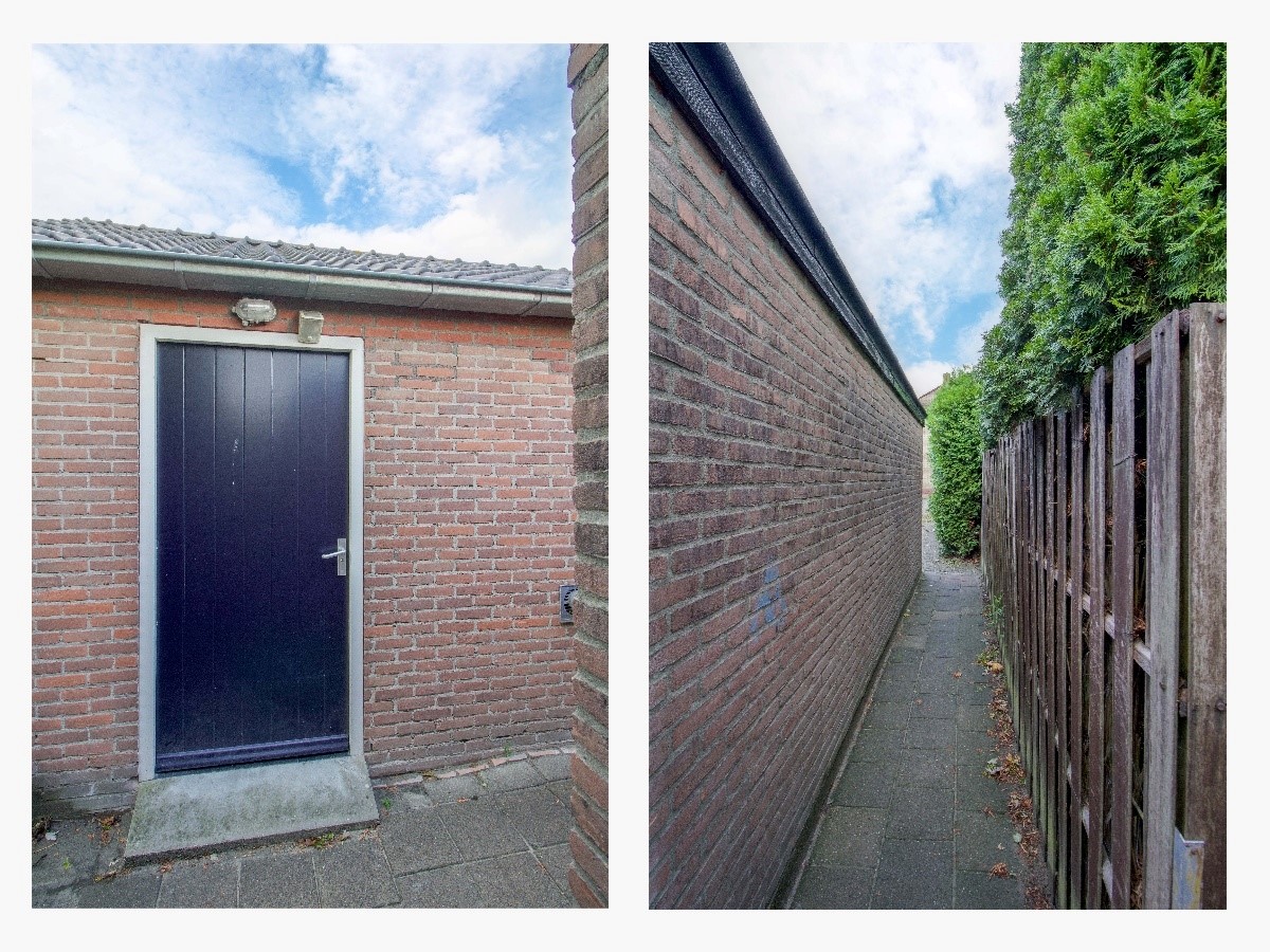 Diepe tuin met leuke veranda en ruime berging. Achterom ook toegang de berging.