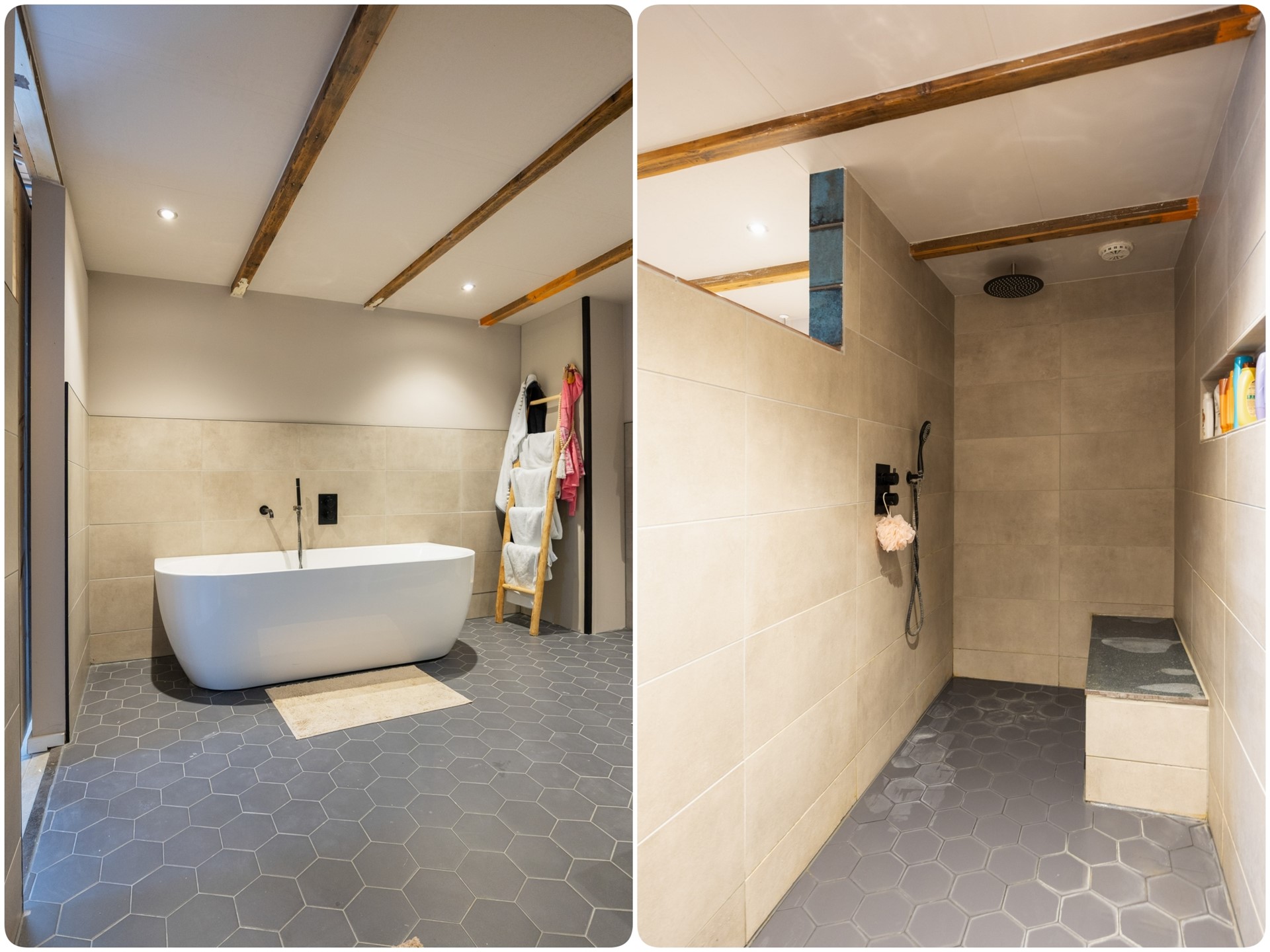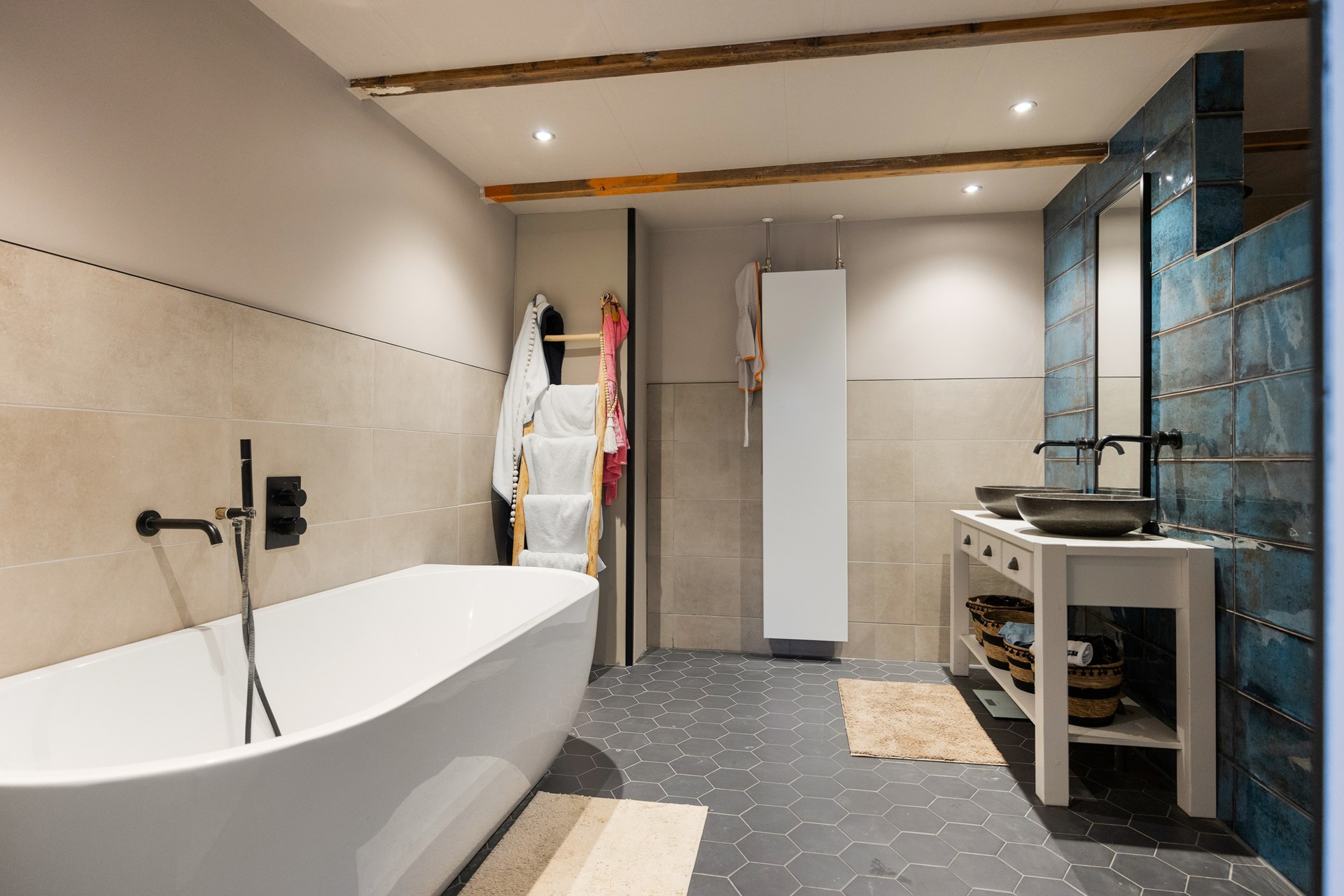 Badkamervoorzieningen Inloopdouche, Ligbad, Vloerverwarming, Wastafel, Wastafelmeubel