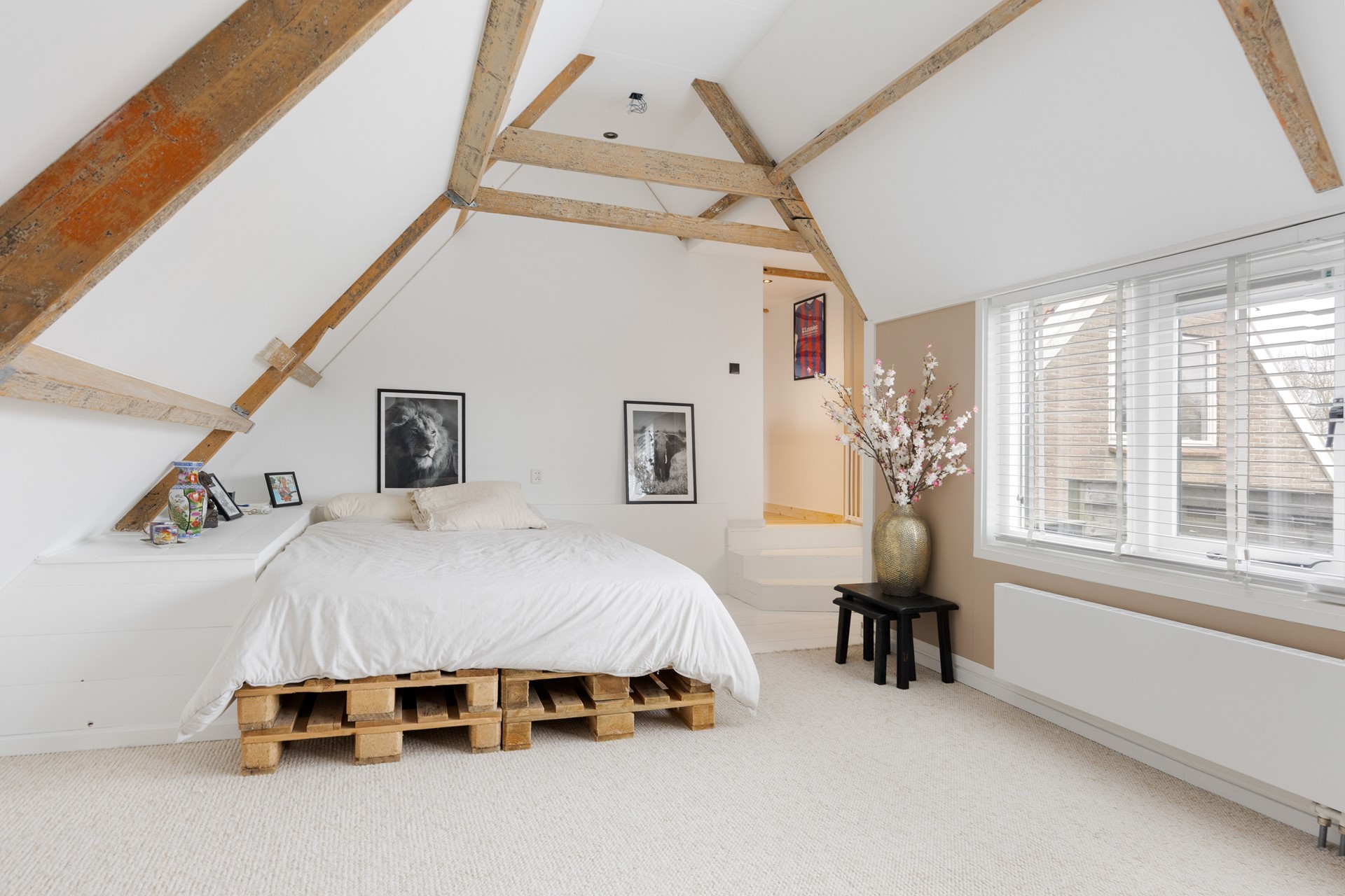 Eerste verdieping: Overloop, twee royale slaapkamers waarvan één met toegang tot dakterras.