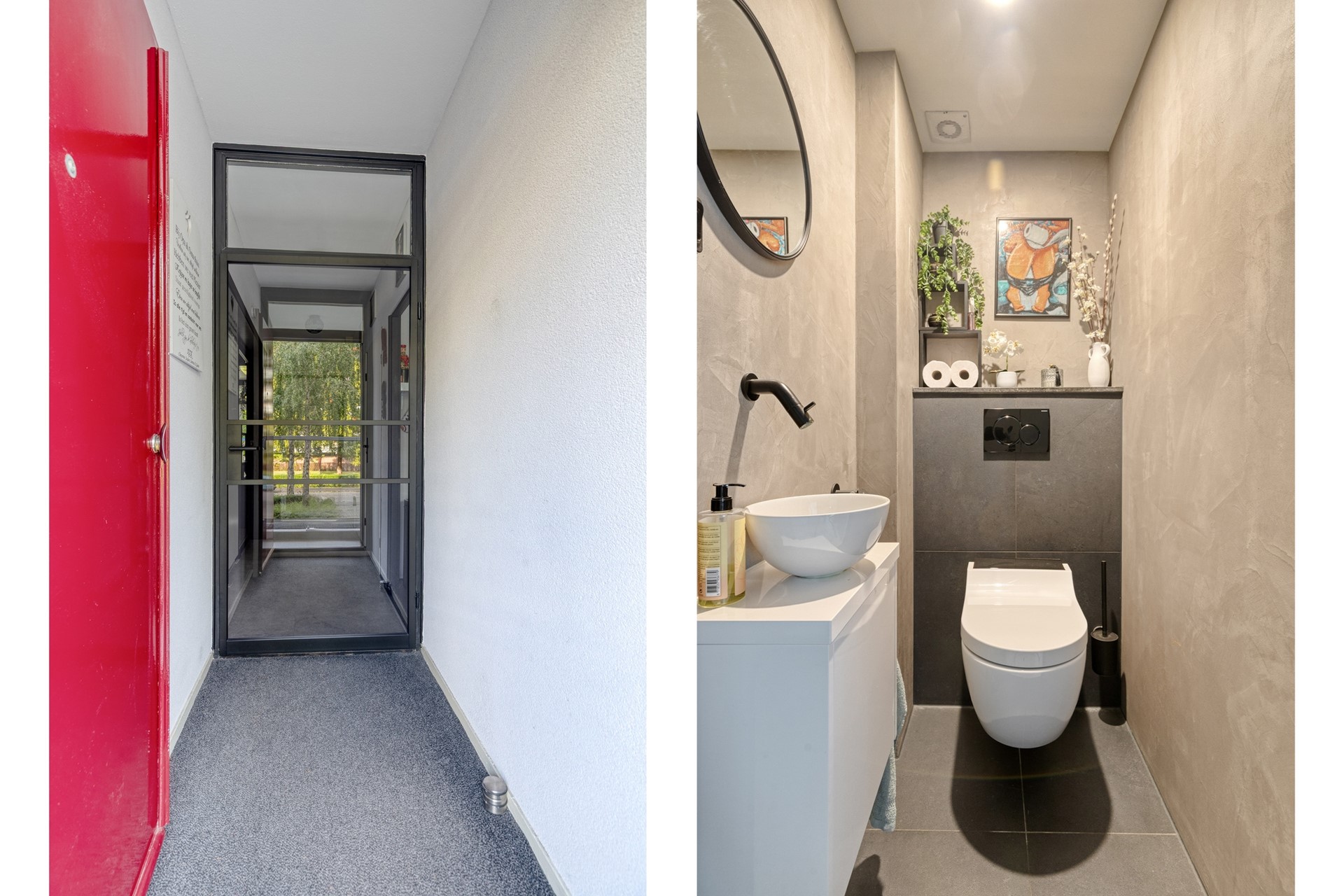 Entree en hal, hier bevindt zich de meterkast en het nette toilet met fonteintje.
