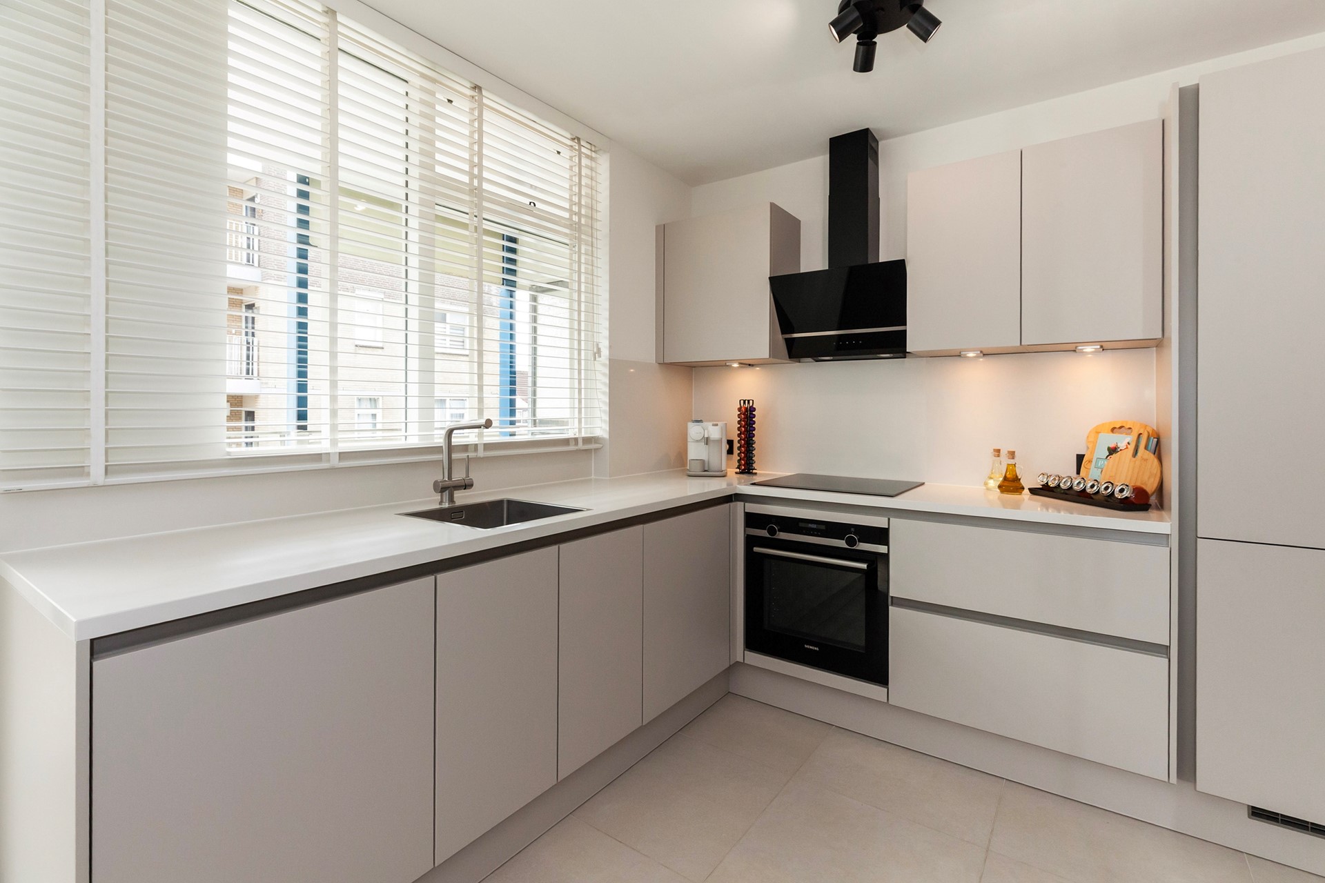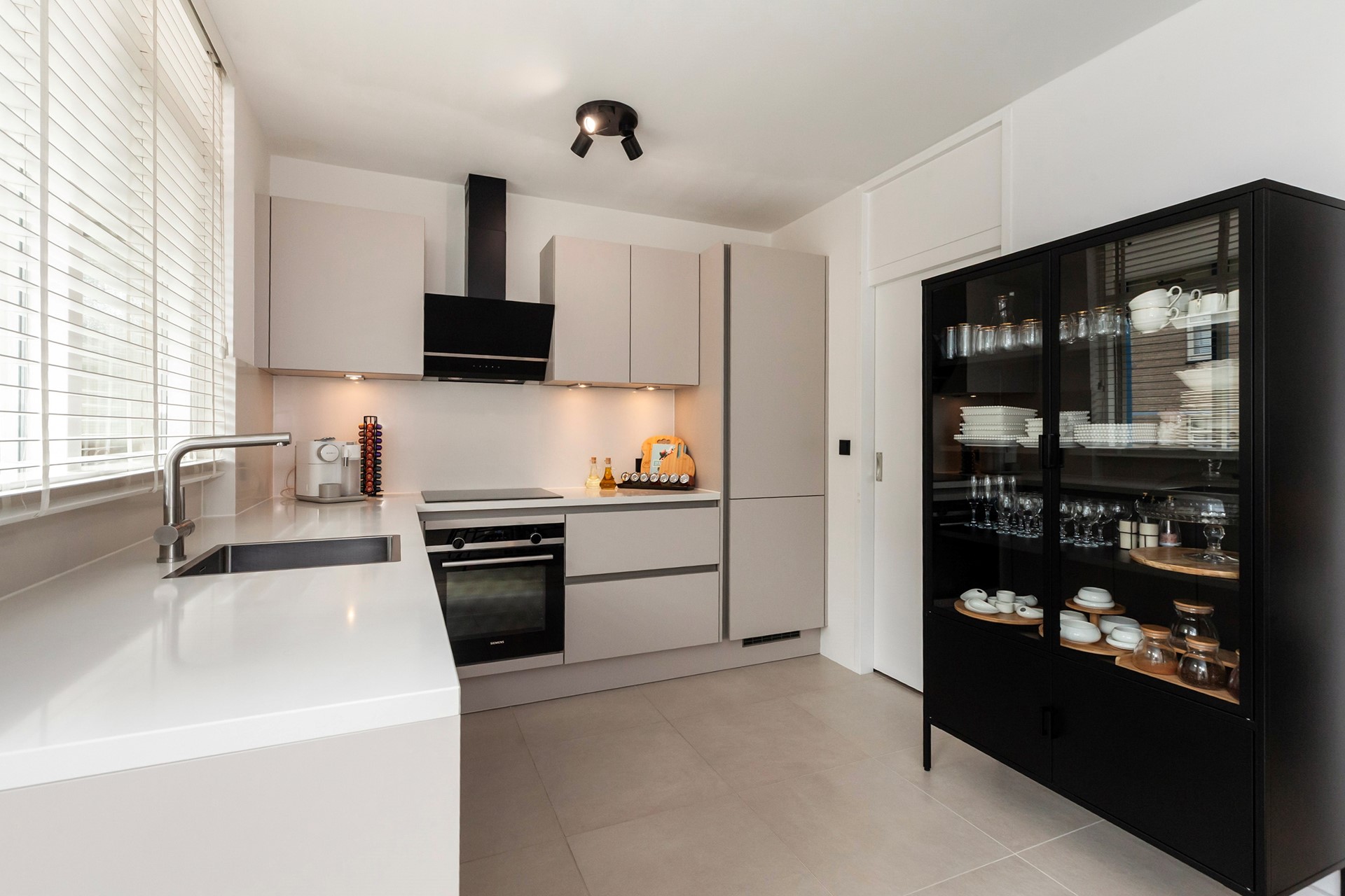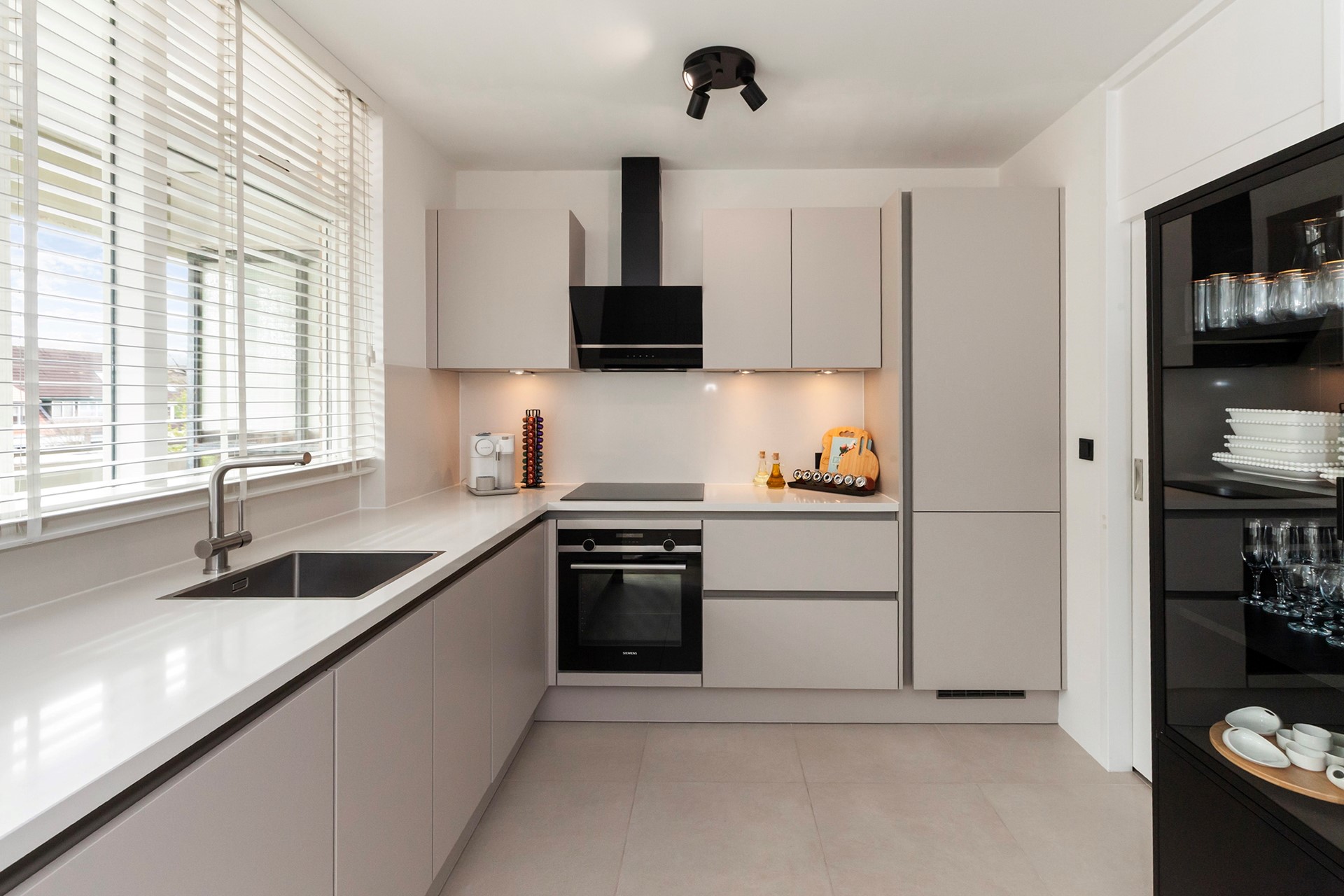 2. Luxe, moderne keuken met composiet blad en Siemens inbouwapparatuur;